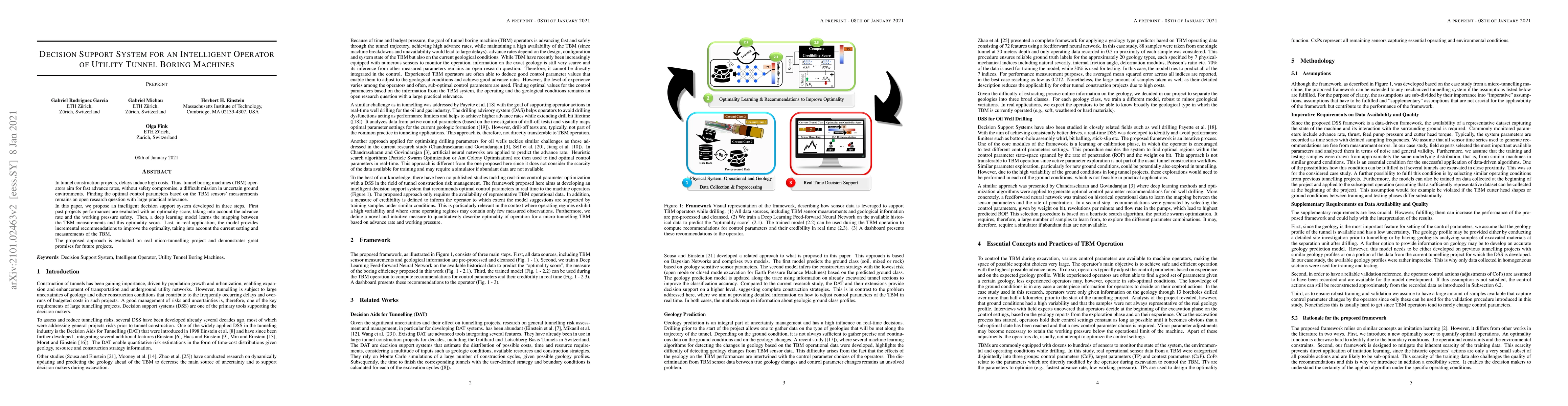This paper proposes a decision support system for TBM operators in tunnel construction, utilizing deep learning to optimize advance rates while ensuring safety. The system evaluates past project performances, learns from TBM sensor data, and provides real-time recommendations to improve operational efficiency.