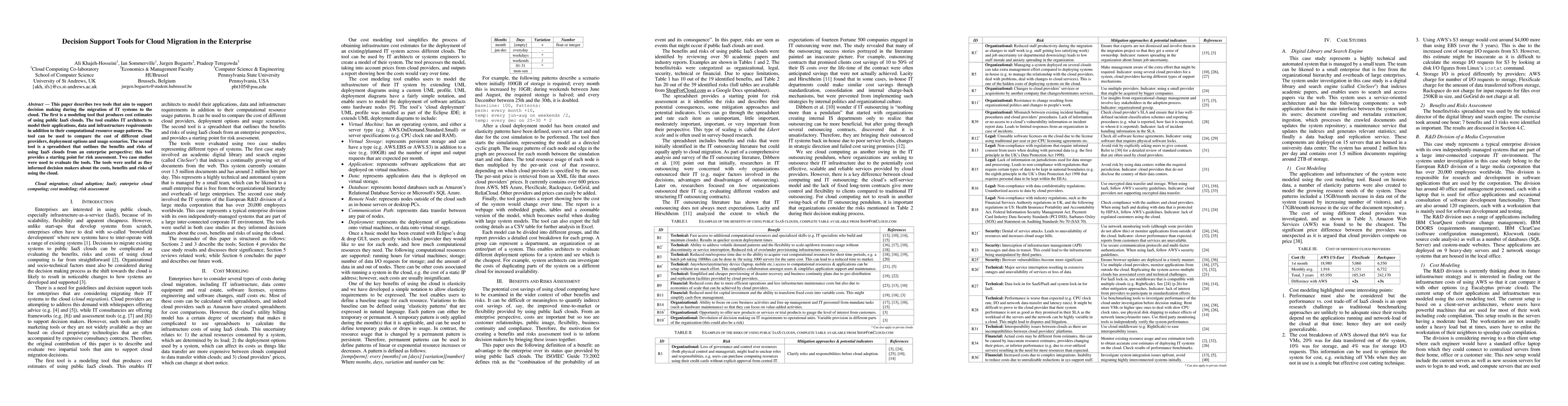 This paper presents two tools to aid enterprise decision-making in cloud migration: a modeling tool for cost estimates of public IaaS clouds and a spreadsheet for assessing benefits and risks. Case studies demonstrated their utility in informing decisions about cloud costs, benefits, and risks.