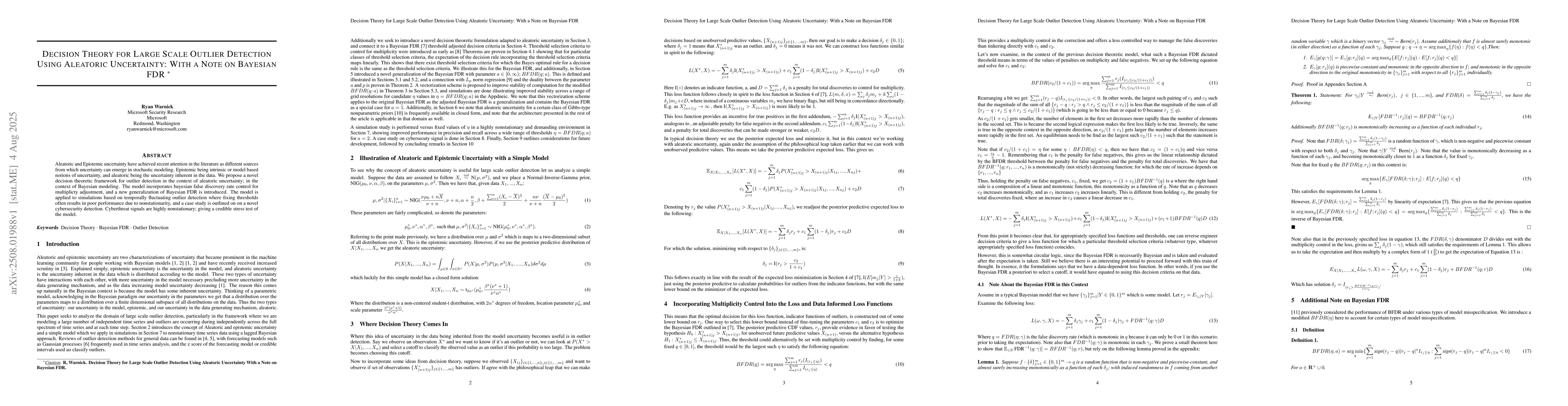 Aleatoric and Epistemic uncertainty have achieved recent attention in the literature as different sources from which uncertainty can emerge in stochastic modeling. Epistemic being intrinsic or model based notions of uncertainty, and aleatoric being the uncertainty inherent in the data. We propose a novel decision theoretic framework for outlier detection in the context of aleatoric uncertainty; in the context of Bayesian modeling. The model incorporates bayesian false discovery rate control for multiplicty adjustment, and a new generalization of Bayesian FDR is introduced. The model is applied to simulations based on temporally fluctuating outlier detection where fixing thresholds often results in poor performance due to nonstationarity, and a case study is outlined on on a novel cybersecurity detection. Cyberthreat signals are highly nonstationary; giving a credible stress test of the model.