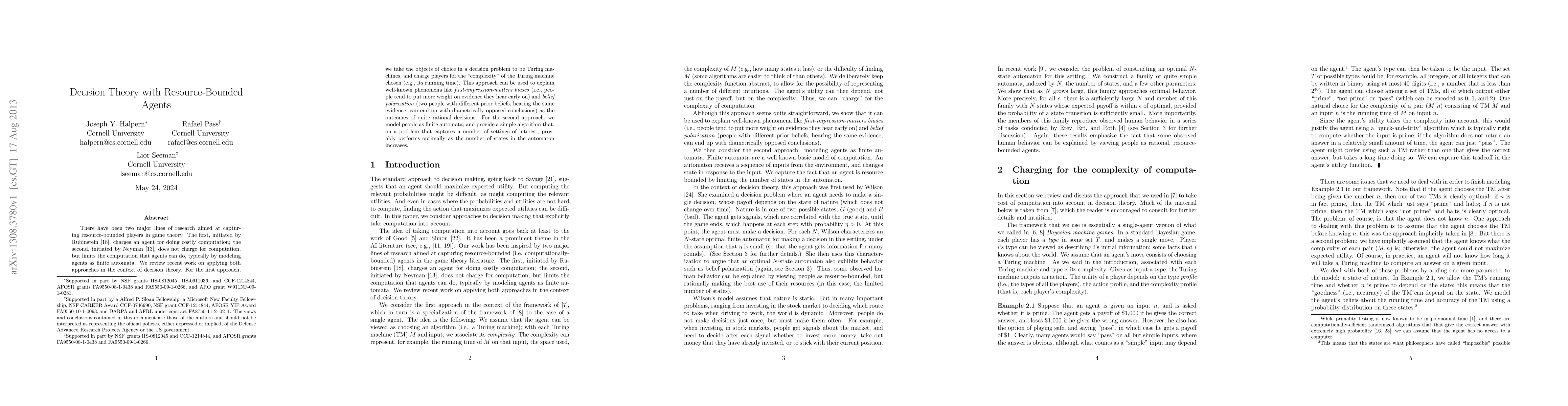 Researchers explored two approaches to modeling resource-bounded agents in decision theory, finding that one method explains biases in human decision-making and the other provides a simple algorithm for optimal performance.