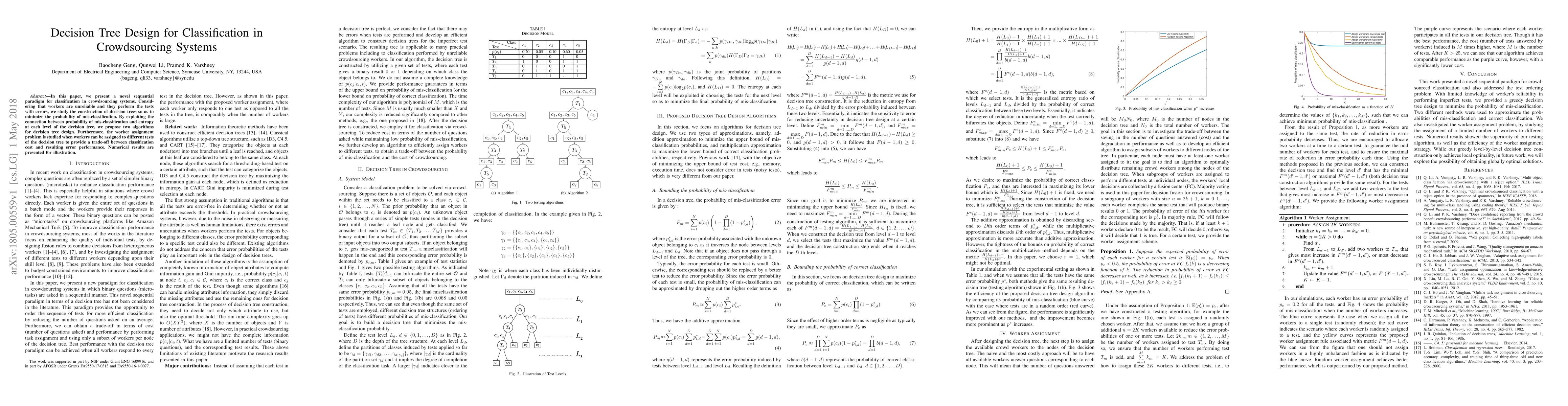 This paper introduces a new method for classification in crowdsourcing systems using decision trees to minimize mis-classification, leveraging entropy to design the trees. It also addresses worker assignment strategies to balance cost and error, supported by numerical results.