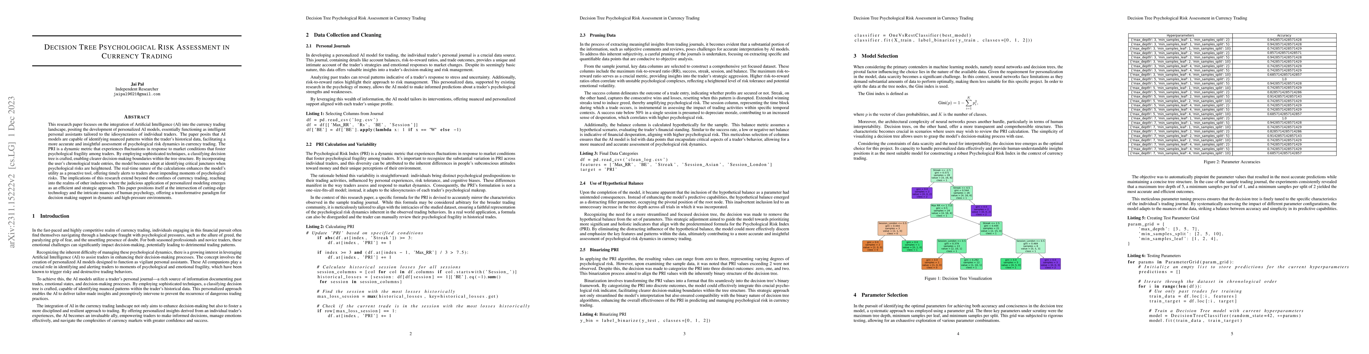 This research paper develops personalized AI models using decision trees to assess psychological risks in currency trading, identifying nuanced patterns in traders' historical data for more accurate risk assessments. The model provides real-time alerts to traders about heightened psychological risks, offering a transformative approach to decision-making support in high-pressure environments.