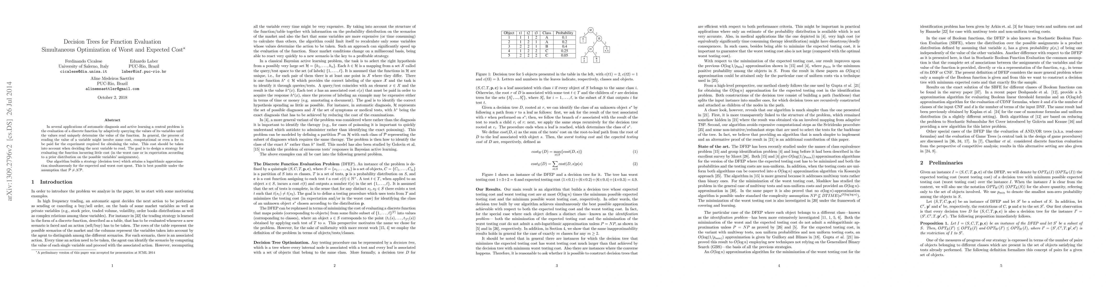 In several applications of automatic diagnosis and active learning a central problem is the evaluation of a discrete function by adaptively querying the values of its variables until the values read uniquely determine the value of the function. In general, the process of reading the value of a variable might involve some cost, computational or even a fee to be paid for the experiment required for obtaining the value. This cost should be taken into account when deciding the next variable to read. The goal is to design a strategy for evaluating the function incurring little cost (in the worst case or in expectation according to a prior distribution on the possible variables' assignments). Our algorithm builds a strategy (decision tree) which attains a logarithmic approxima- tion simultaneously for the expected and worst cost spent. This is best possible under the assumption that $P \neq NP.$
