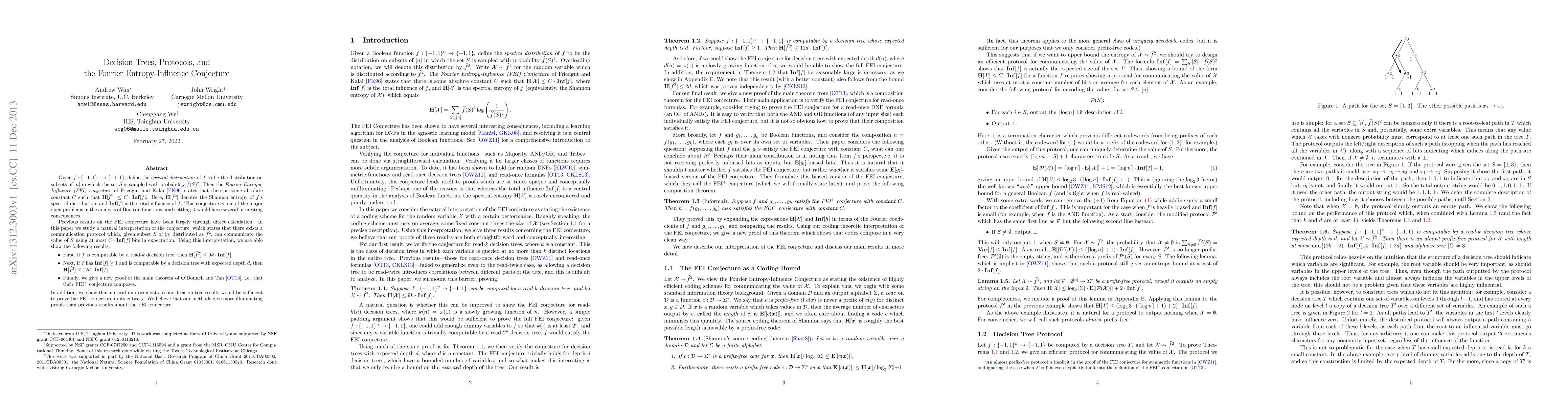 Researchers prove that there exists a communication protocol to convey subset information using at most C times the total influence of a Boolean function, settling key findings for the Fourier Entropy-Influence conjecture.