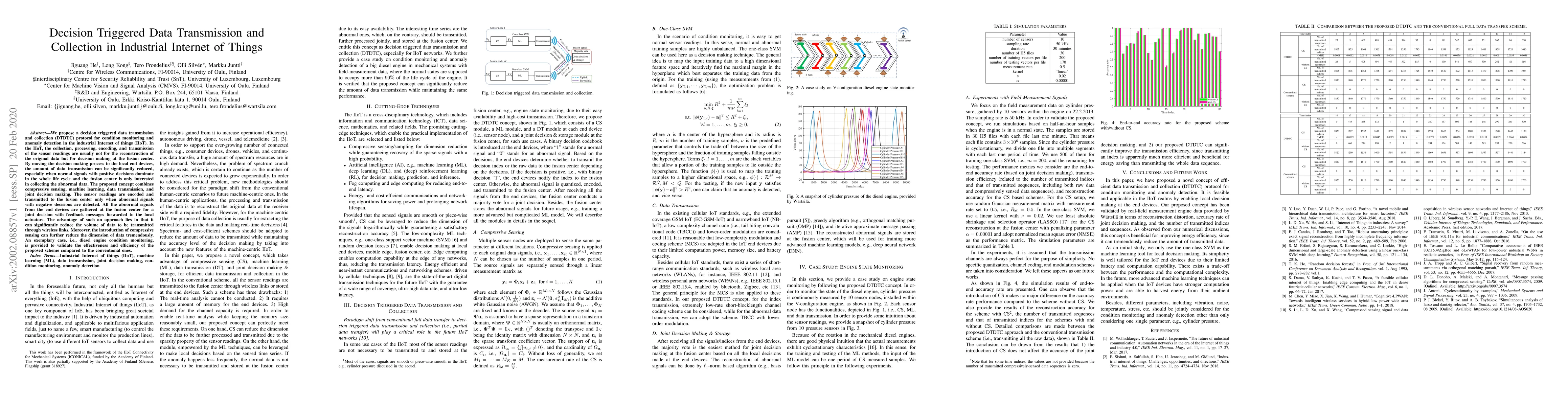 This paper proposes a decision-triggered data transmission and collection (DTDTC) protocol for industrial Internet of Things (IIoT) to optimize data transmission for decision making. The approach reduces data volume by encoding and transmitting only abnormal signals, leveraging compressive sensing and machine learning, validated through diesel engine condition monitoring.