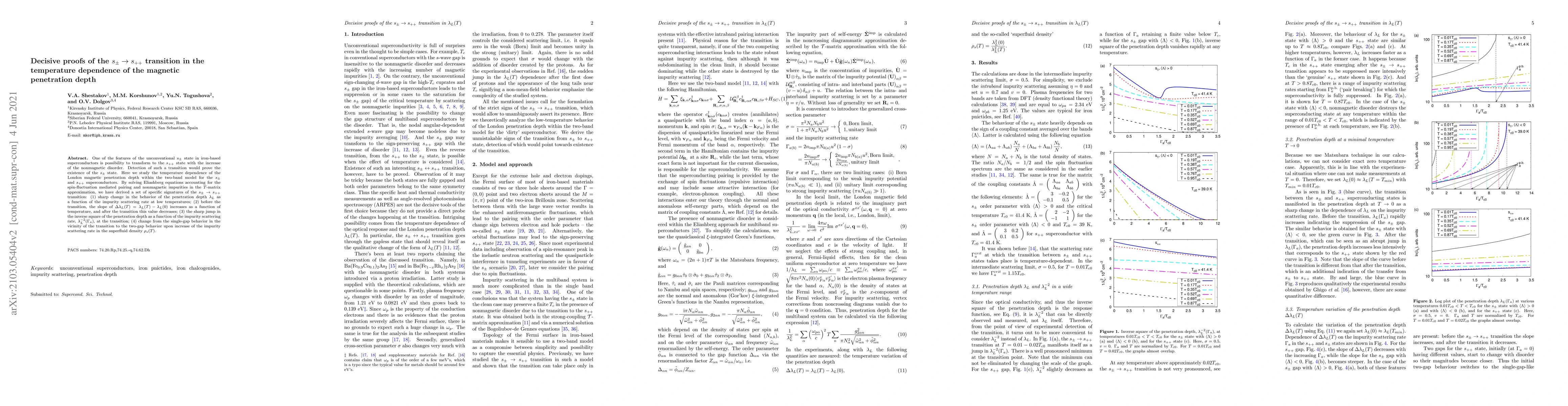 This paper provides decisive proofs of the $s_\pm \to s_{++}$ transition in iron-based superconductors by studying the temperature dependence of the magnetic penetration depth. The specific signatures identified include a sharp change in the penetration depth behavior with impurity scattering rate, a transition from single-gap to two-gap behavior in the superfluid density, and a sharp jump in the inverse square of the penetration depth.