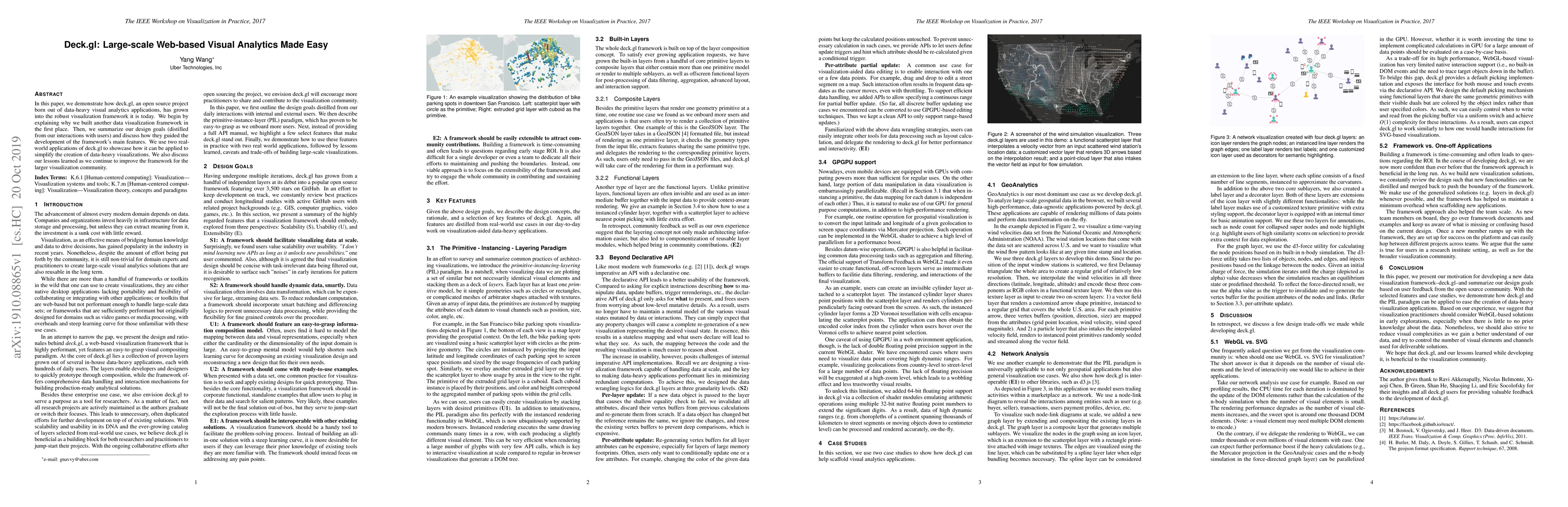 In this paper, we demonstrate how deck.gl, an open-source project born out of data-heavy visual analytics applications, has grown into the robust visualization framework it is today. We begin by explaining why we built another data visualization framework in the first place. Then, we summarize our design goals (distilled from our interactions with users) and discuss how they guided the development of the framework's main features. We use two real-world applications of deck.gl to showcase how it can be applied to simplify the creation of data-heavy visualizations. We also discuss our lessons learned as we continue to improve the framework for the larger visualization community.