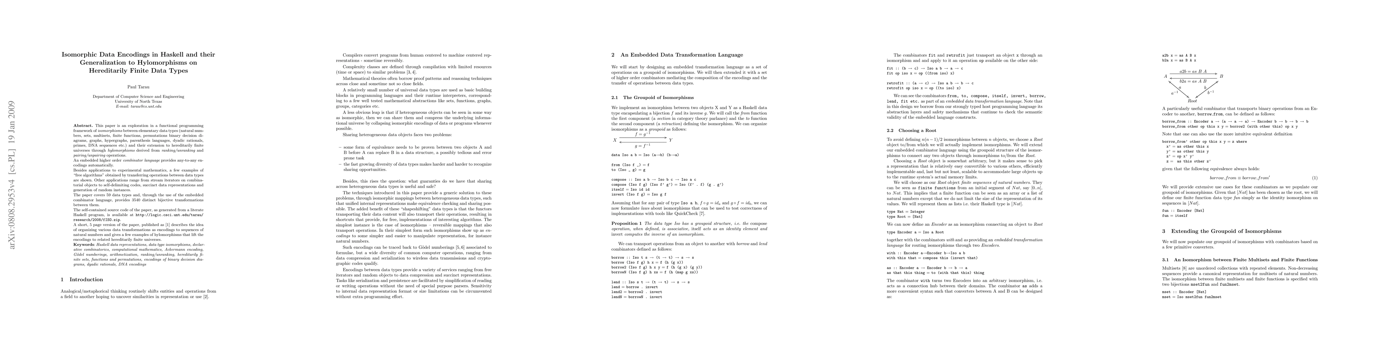 This paper explores isomorphisms between various data types in Haskell, enabling automatic encoding transformations through a higher-order combinator language, with applications in computational mathematics and other fields.