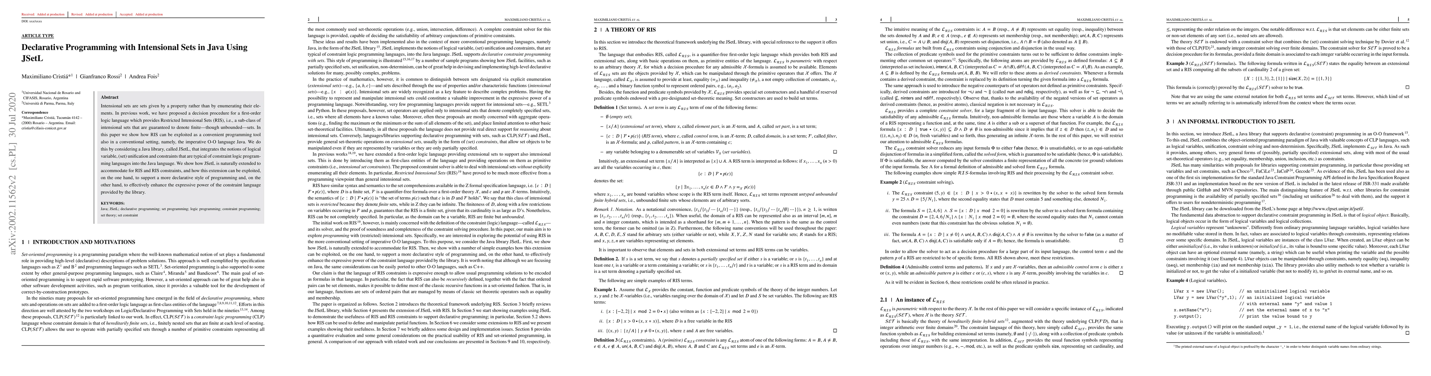 This paper explores the integration of intensional sets, specifically Restricted Intensional Sets (RIS), into Java through a library called JSetL, enhancing Java's expressive power and enabling a more declarative programming style. The study demonstrates how JSetL extends Java with logical variables, unification, and constraints, facilitating the use of RIS for finite set representation.