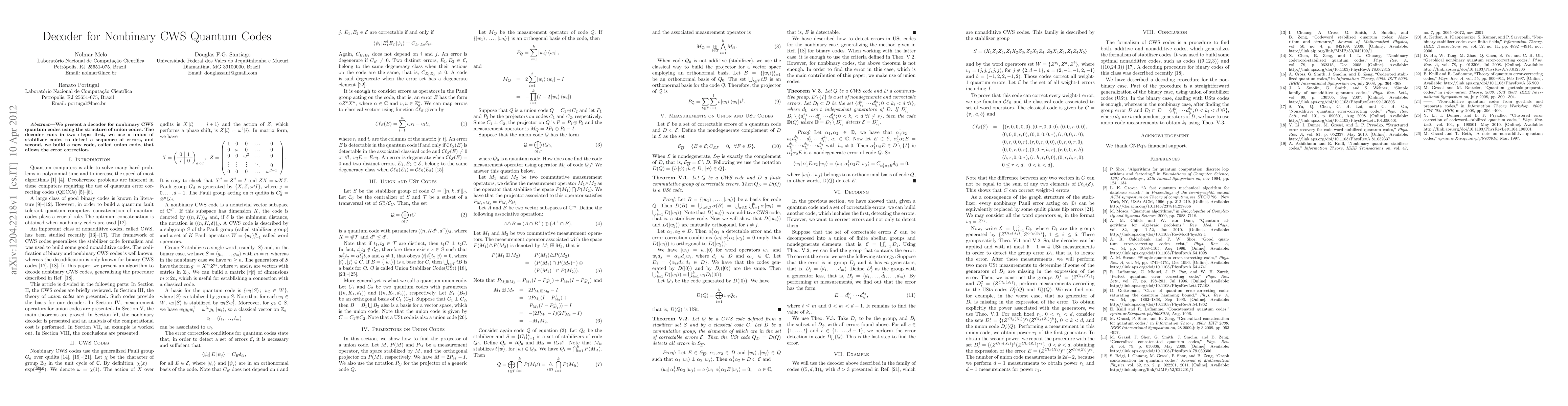 Summary: This paper introduces a decoder for nonbinary CWS quantum codes leveraging union codes, involving two steps: error detection using a union of stabilizer codes and error correction through a newly constructed union code.