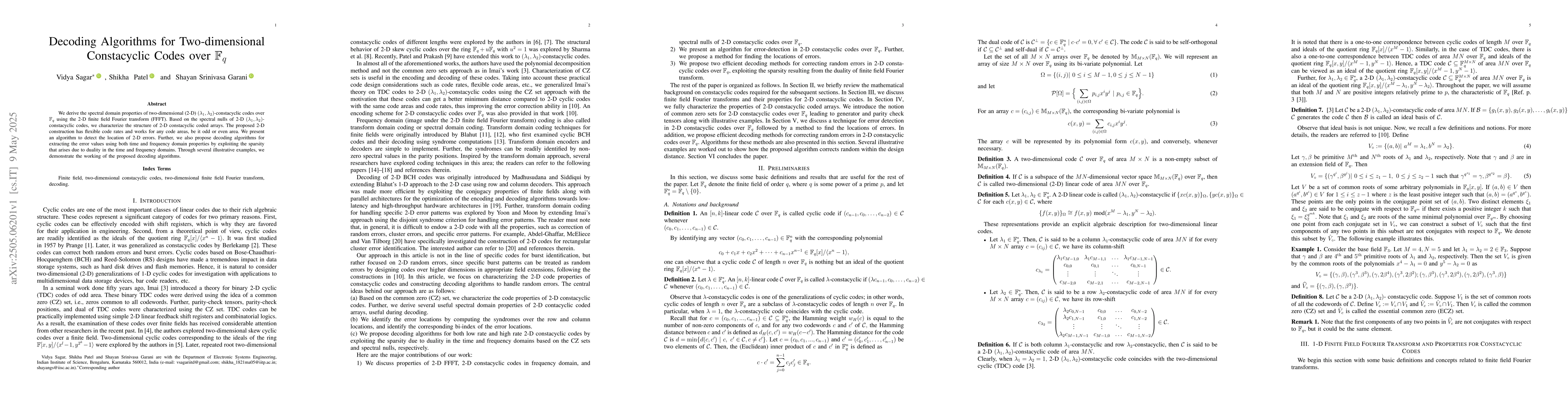 The paper presents spectral domain properties of 2-D constacyclic codes and corresponding decoding algorithms exploiting duality in time and frequency domains.