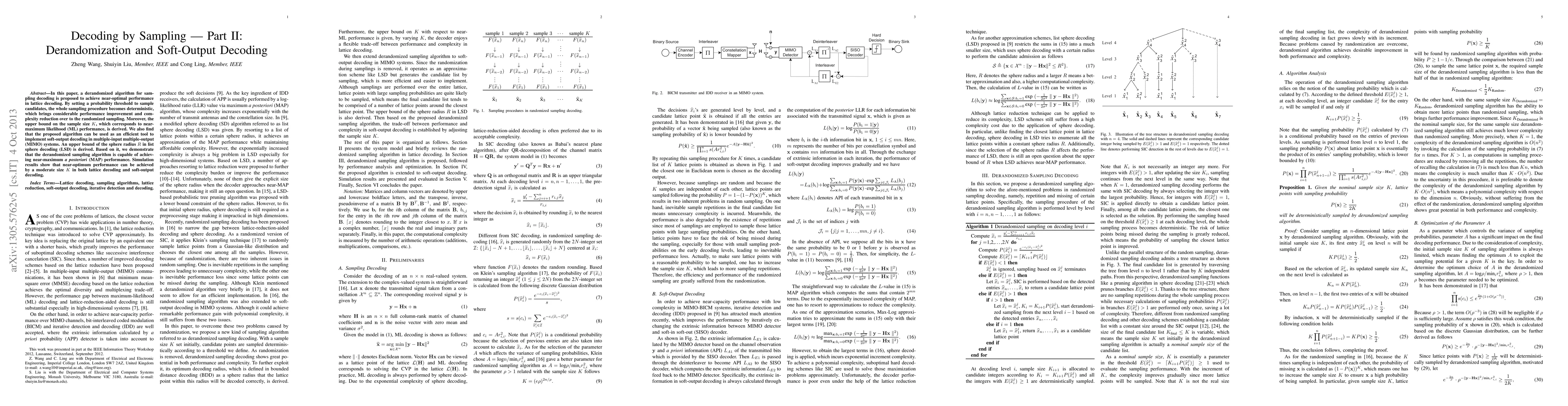 This paper proposes a derandomized sampling algorithm for lattice decoding, achieving near-optimal performance through deterministic sampling with a probability threshold. It also demonstrates the algorithm's efficiency in soft-output decoding for MIMO systems, showing near-MAP performance with a derived upper bound on the sphere radius.