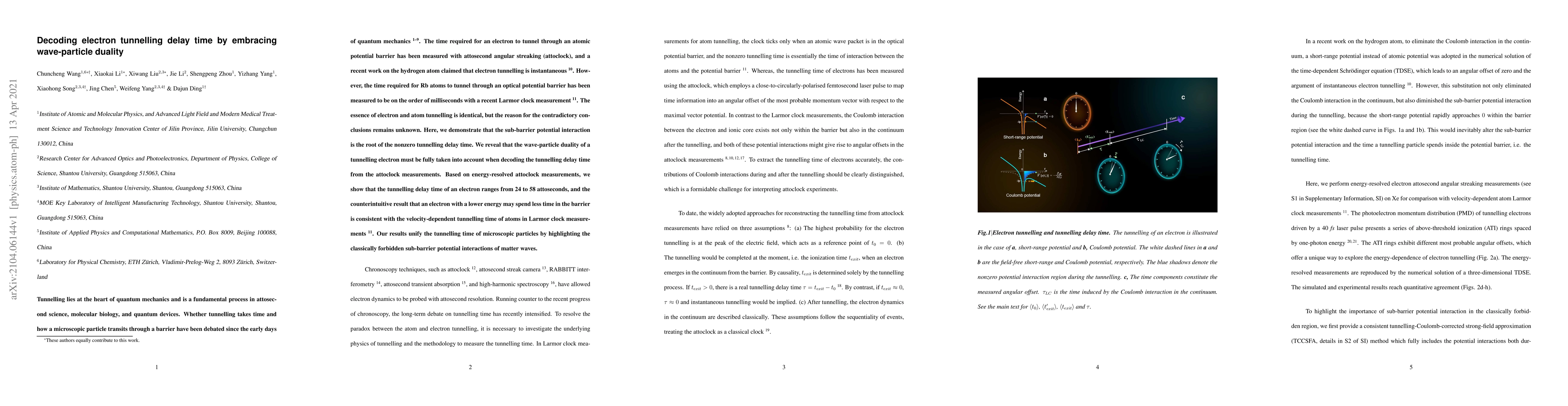 This paper investigates the electron tunnelling delay time, revealing that it ranges from 24 to 58 attoseconds, and emphasizes the necessity of considering wave-particle duality in attosecond measurements. It reconciles previous contradictory findings by attributing the delay to sub-barrier potential interactions, thus unifying the understanding of tunnelling times across different particles.