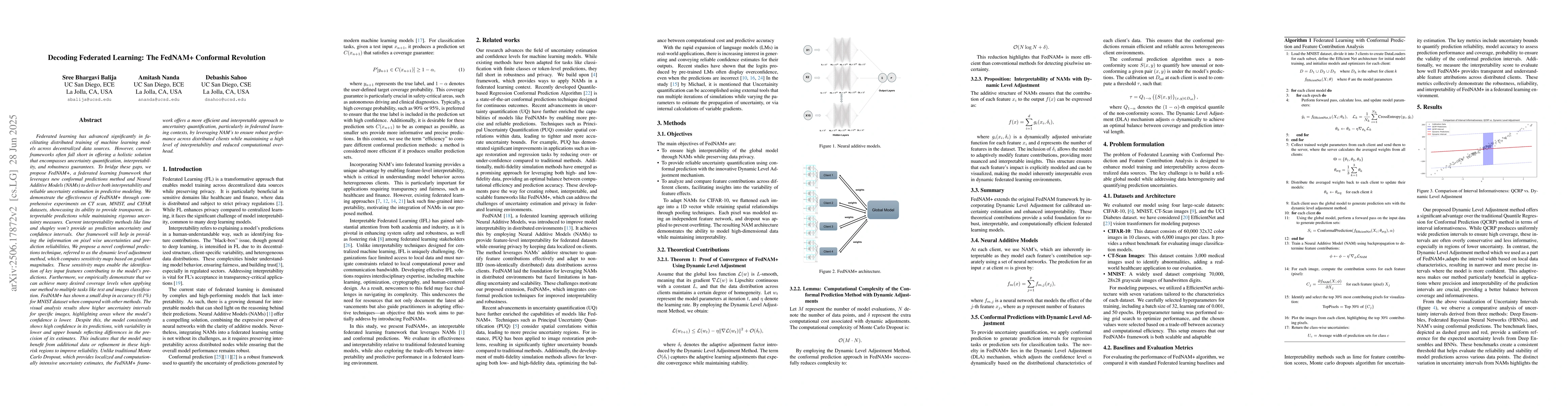 Federated learning has significantly advanced distributed training of machine learning models across decentralized data sources. However, existing frameworks often lack comprehensive solutions that combine uncertainty quantification, interpretability, and robustness. To address this, we propose FedNAM+, a federated learning framework that integrates Neural Additive Models (NAMs) with a novel conformal prediction method to enable interpretable and reliable uncertainty estimation. Our method introduces a dynamic level adjustment technique that utilizes gradient-based sensitivity maps to identify key input features influencing predictions. This facilitates both interpretability and pixel-wise uncertainty estimates. Unlike traditional interpretability methods such as LIME and SHAP, which do not provide confidence intervals, FedNAM+ offers visual insights into prediction reliability. We validate our approach through experiments on CT scan, MNIST, and CIFAR datasets, demonstrating high prediction accuracy with minimal loss (e.g., only 0.1% on MNIST), along with transparent uncertainty measures. Visual analysis highlights variable uncertainty intervals, revealing low-confidence regions where model performance can be improved with additional data. Compared to Monte Carlo Dropout, FedNAM+ delivers efficient and global uncertainty estimates with reduced computational overhead, making it particularly suitable for federated learning scenarios. Overall, FedNAM+ provides a robust, interpretable, and computationally efficient framework that enhances trust and transparency in decentralized predictive modeling.