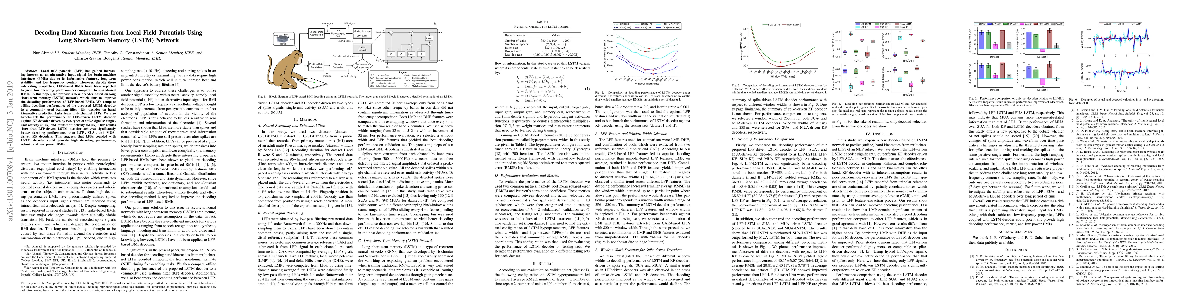 This paper proposes a long short-term memory (LSTM) network decoder to enhance the decoding performance of brain-machine interfaces (BMIs) using local field potentials (LFPs). The LSTM decoder outperforms a Kalman filter decoder in predicting hand kinematics from multichannel LFPs, suggesting LFP-based BMIs with LSTM could achieve robust and efficient decoding.
