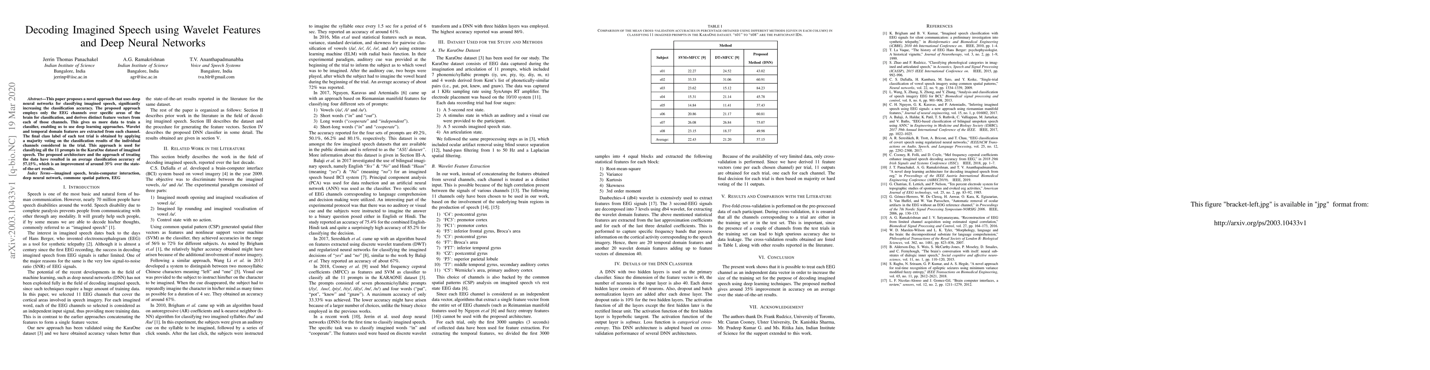 This paper introduces a deep neural network method for classifying imagined speech using EEG data, achieving a 57.15% accuracy rate—a 35% improvement over previous methods. It utilizes wavelet and temporal features from specific brain areas, employing a majority voting system for final classification.