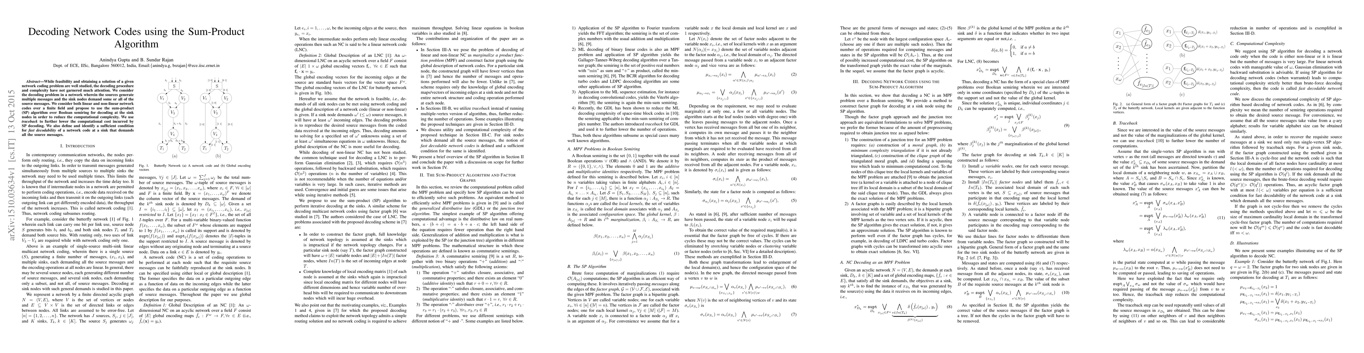 While feasibility and obtaining a solution of a given network coding problem are well studied, the decoding procedure and complexity have not garnered much attention. We consider the decoding problem in a network wherein the sources generate multiple messages and the sink nodes demand some or all of the source messages. We consider both linear and non-linear network codes over a finite field and propose to use the sum-product (SP) algorithm over Boolean semiring for decoding at the sink nodes in order to reduce the computational complexity. We use traceback to further lower the computational complexity incurred by SP decoding. We also define and identify a sufficient condition for fast decodability of a network code at a sink that demands all the source messages.