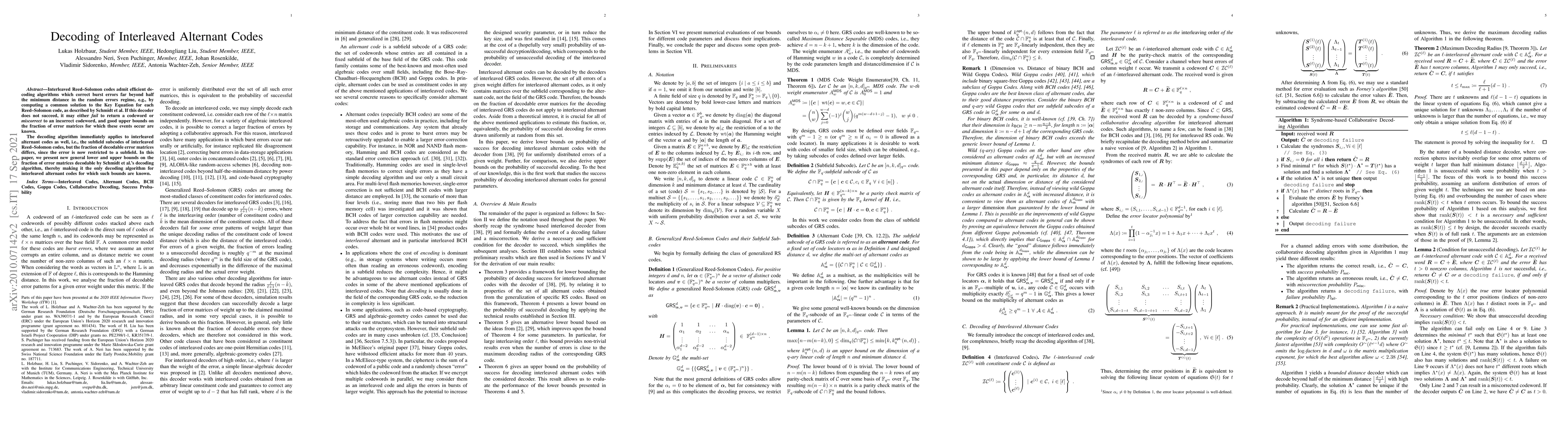 Antonia Wachter-Zeh, Hedongliang Liu, Sven Puchinger et al.