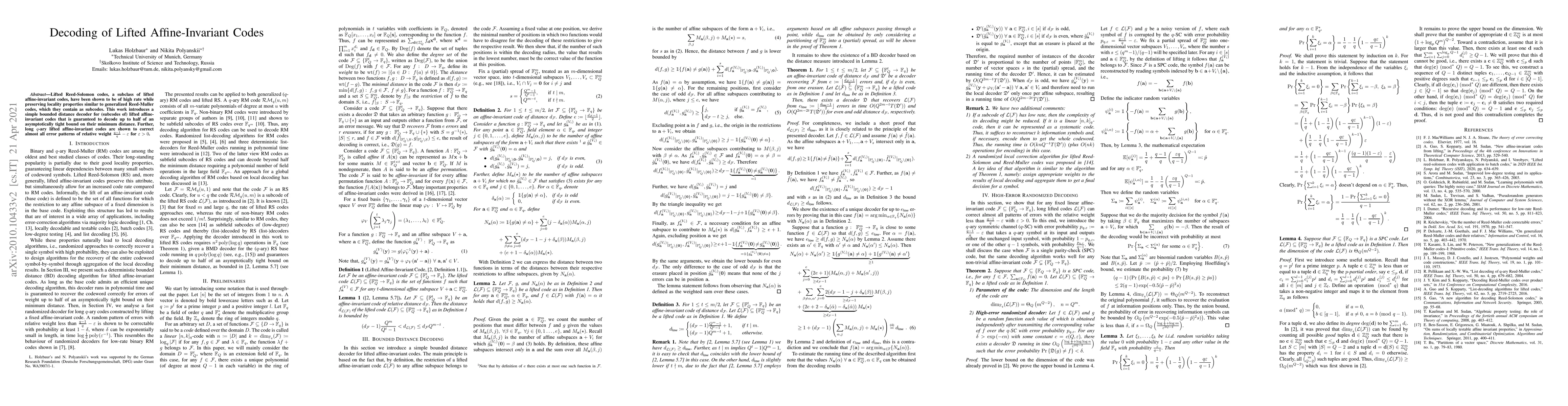 This paper presents a simple bounded distance decoder for lifted affine-invariant codes, achieving decoding up to almost half of their minimum distance. It also demonstrates that long $q$-ary codes can correct almost all error patterns of relative weight $\frac{q-1}{q}-\epsilon$ for any $\epsilon>0$.