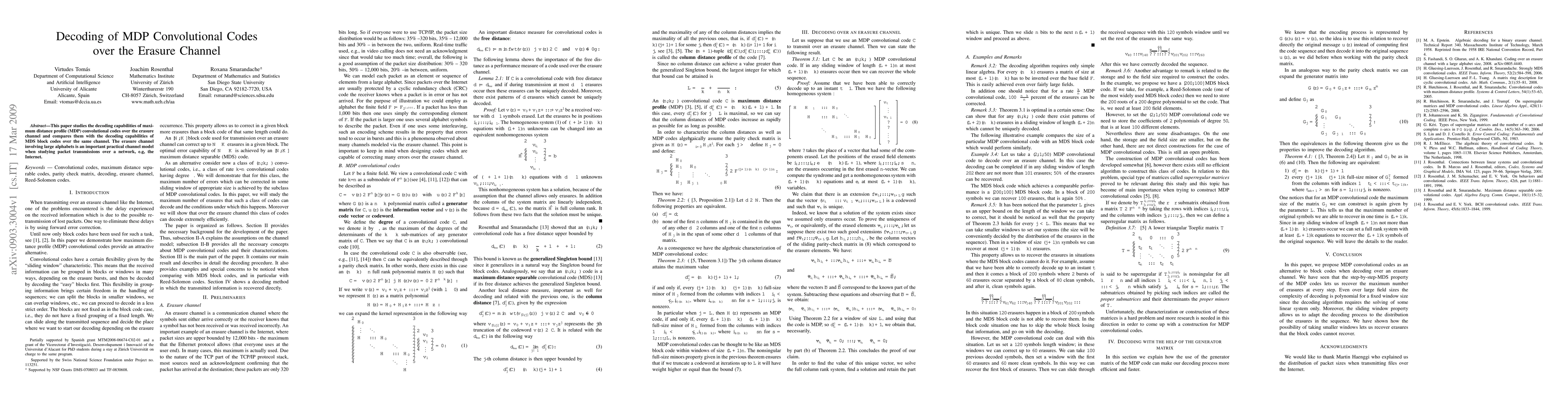 This paper investigates the decoding efficiency of MDP convolutional codes over the erasure channel and contrasts it with MDS block codes under the same conditions, highlighting its significance for packet transmission in large-alphabet networks like the Internet.