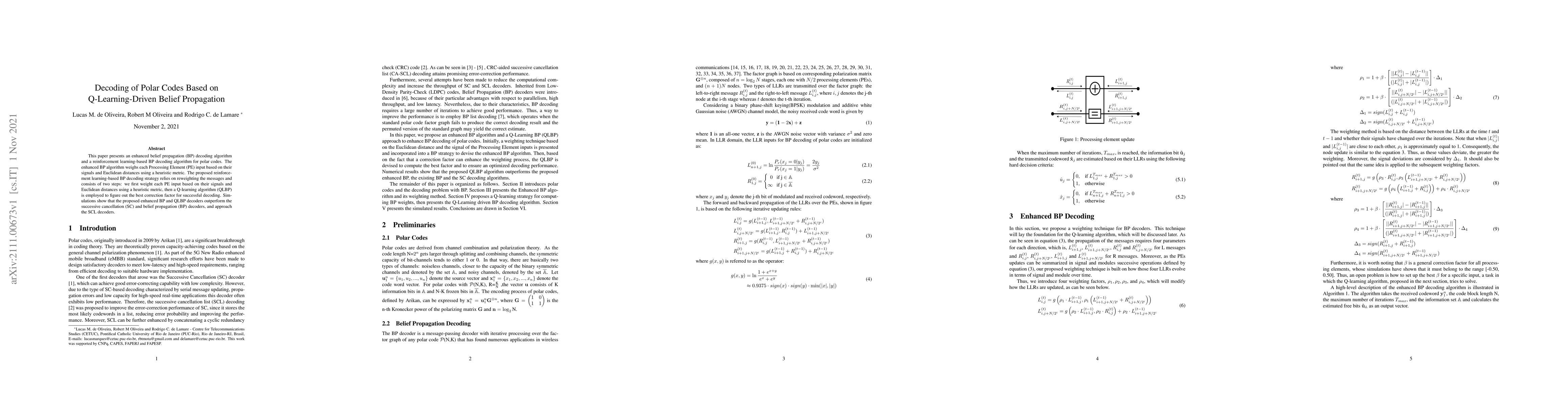 This paper introduces an enhanced belief propagation and a Q-learning-based reinforcement learning algorithm for decoding polar codes, showing improved performance over traditional methods and approaching the success of successive cancellation decoders.