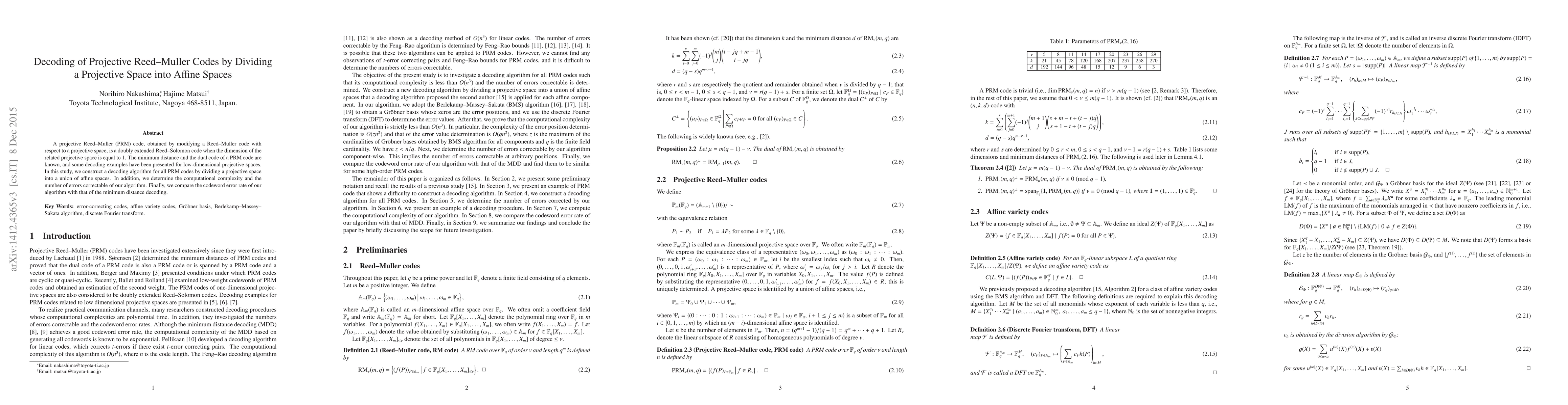 This study proposes a decoding algorithm for projective Reed-Muller codes by decomposing projective space into affine spaces, determining its computational complexity, and comparing its error rate to minimum distance decoding. The algorithm corrects more errors than minimum distance decoding.