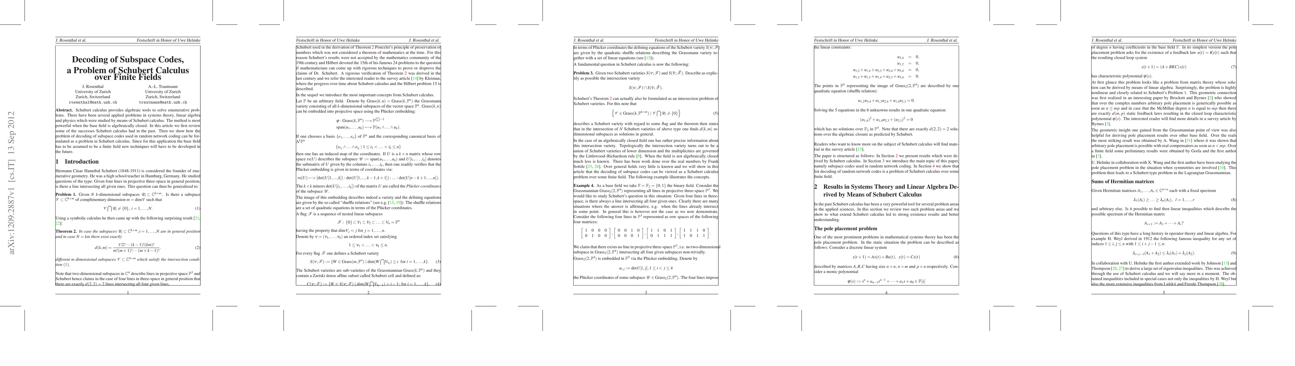 This paper reviews the successes of Schubert calculus in solving enumerative problems and applies it to decoding subspace codes in random network coding. It highlights the necessity of developing new techniques for finite fields to address this problem.