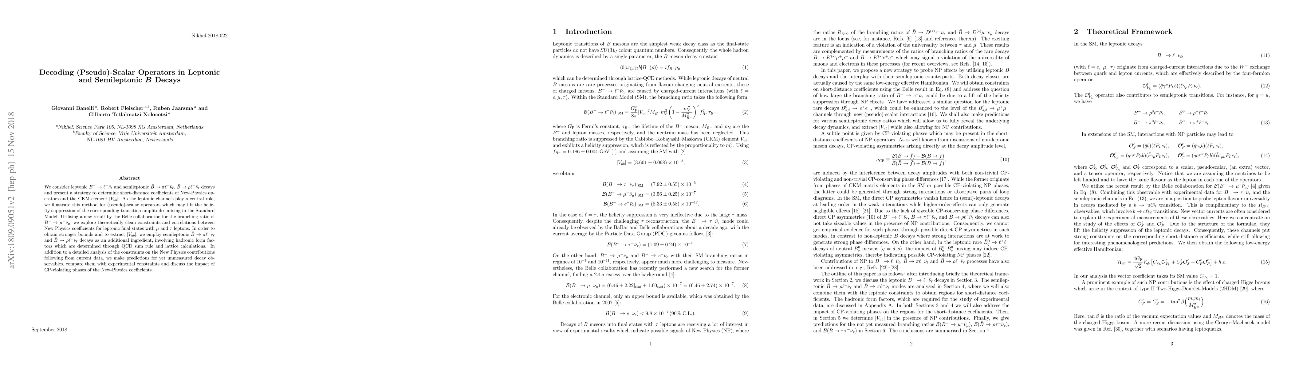 We consider leptonic $B^-\to \ell^- \bar\nu_\ell$ and semileptonic $\bar B \to \pi \ell^- \bar\nu_\ell$, $\bar B \to \rho \ell^- \bar\nu_\ell$ decays and present a strategy to determine short-distance coefficients of New-Physics operators and the CKM element $|V_{ub}|$. As the leptonic channels play a central role, we illustrate this method for (pseudo)-scalar operators which may lift the helicity suppression of the corresponding transition amplitudes arising in the Standard Model. Utilising a new result by the Belle collaboration for the branching ratio of $B^-\to \mu^- \bar\nu_\mu$, we explore theoretically clean constraints and correlations between New Physics coefficients for leptonic final states with $\mu$ and $\tau$ leptons. In order to obtain stronger bounds and to extract $|V_{ub}|$, we employ semileptonic $\bar B \to \pi \ell^- \bar\nu_\ell$ and $\bar B \to \rho \ell^- \bar\nu_\ell$ decays as an additional ingredient, involving hadronic form factors which are determined through QCD sum rule and lattice calculations. In addition to a detailed analysis of the constraints on the New Physics contributions following from current data, we make predictions for yet unmeasured decay observables, compare them with experimental constraints and discuss the impact of CP-violating phases of the New-Physics coefficients.