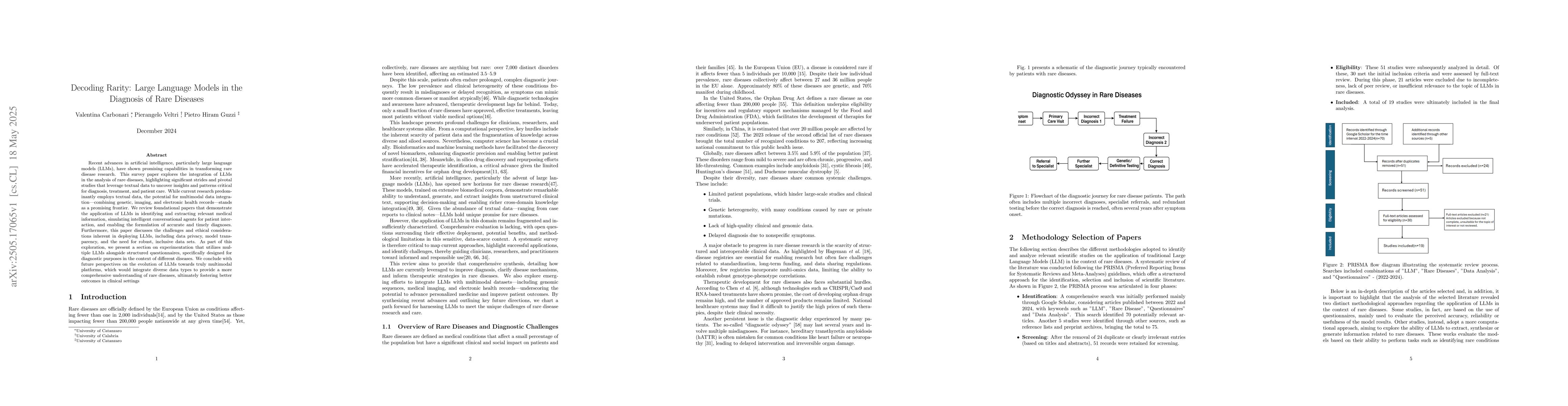 The paper presents a comprehensive review of LLM applications in rare disease research, highlighting key studies and methodologies, while also outlining the potential for future multimodal integration.