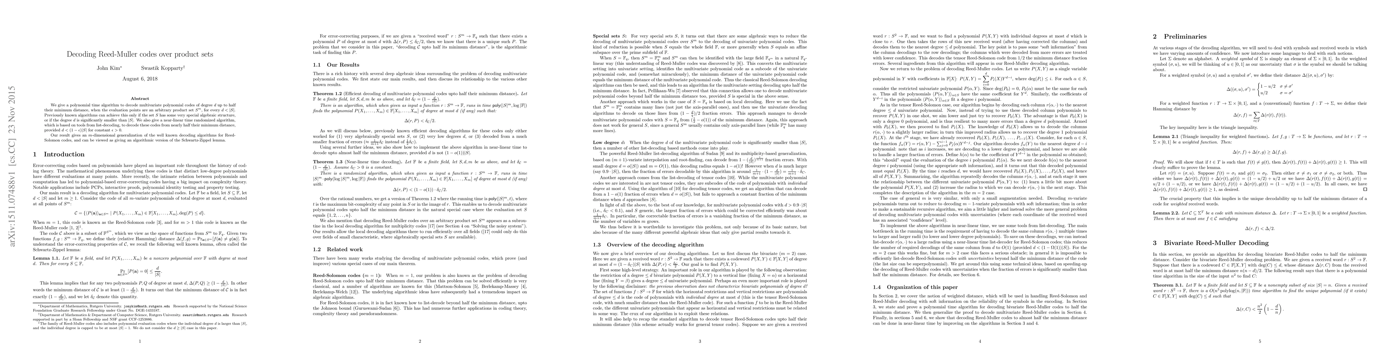 Summary: This paper presents polynomial and near-linear time algorithms to decode multivariate polynomial codes, known as Reed-Muller codes, evaluated over arbitrary product sets. These algorithms generalize decoding techniques for Reed-Solomon codes and provide a new algorithmic interpretation of the Schwartz-Zippel lemma.