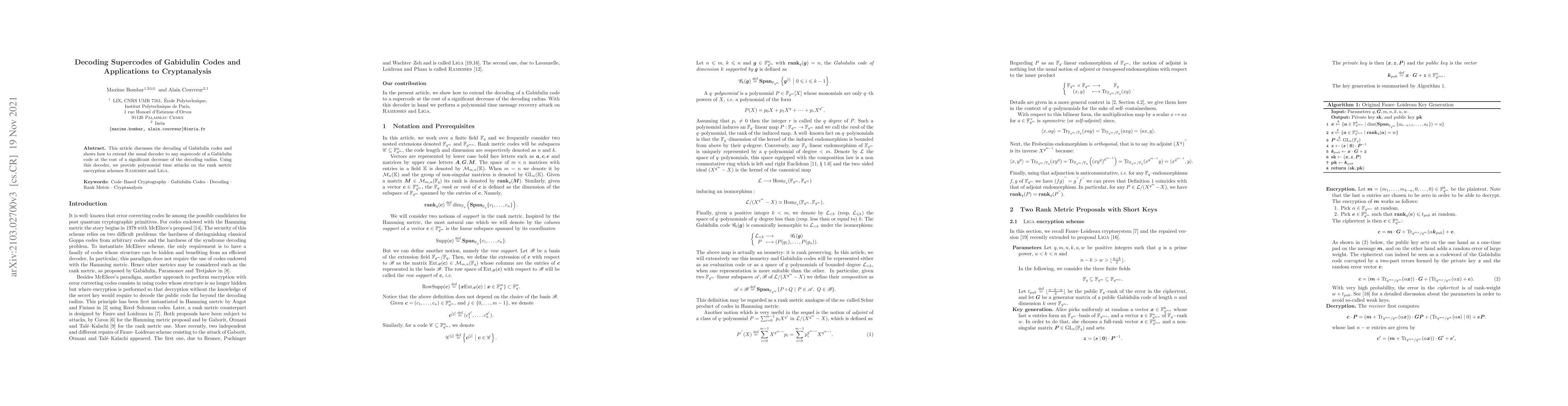 This paper presents a method for decoding Gabidulin codes and extending this technique to any supercode, significantly reducing the decoding radius. It also introduces polynomial time attacks on rank-metric encryption schemes RAMESSES and LIGA using the proposed decoder.