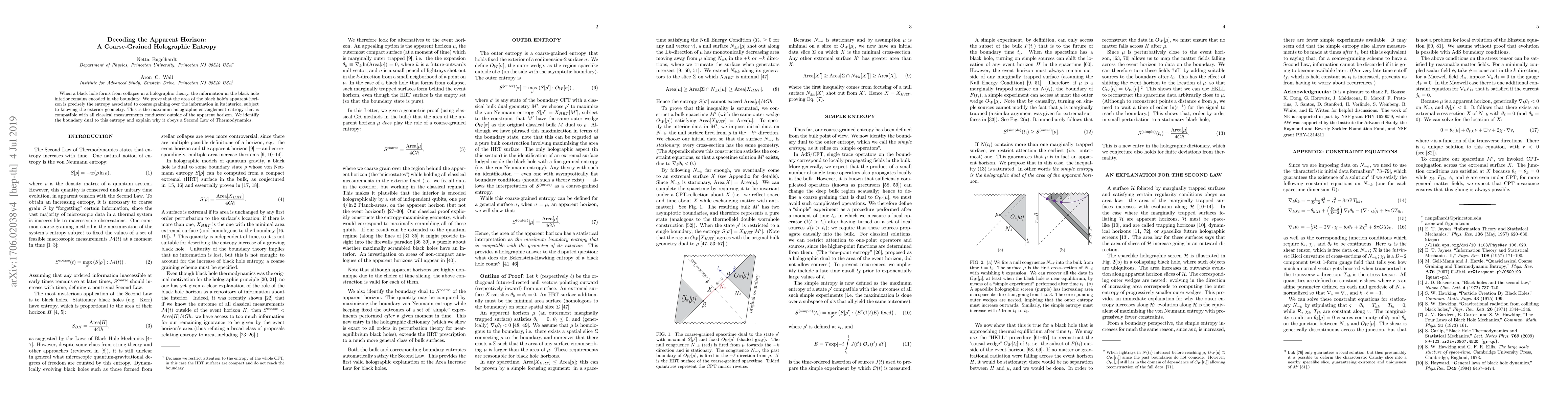 Researchers prove that a black hole's apparent horizon area equals its holographic entropy, which is the maximum entanglement compatible with outside measurements. This discovery relates to the Second Law of Thermodynamics and offers insights into black hole information encoding.