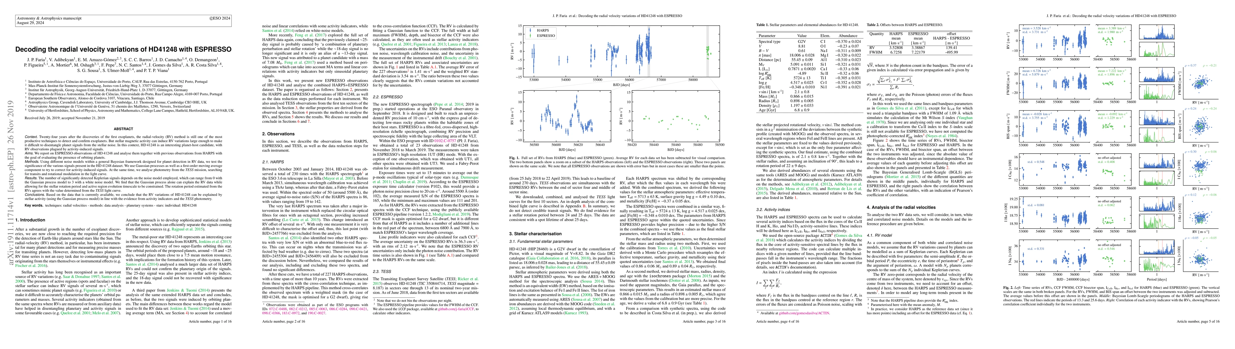 Twenty-four years after the discoveries of the first exoplanets, the radial-velocity (RV) method is still one of the most productive techniques to detect and confirm exoplanets. But stellar magnetic activity can induce RV variations large enough to make it difficult to disentangle planet signals from the stellar noise. In this context, HD41248 is an interesting planet-host candidate, with RV observations plagued by activity-induced signals. We report on ESPRESSO observations of HD41248 and analyse them together with previous observations from HARPS with the goal of evaluating the presence of orbiting planets. Using different noise models within a general Bayesian framework designed for planet detection in RV data, we test the significance of the various signals present in the HD41248 dataset. We use Gaussian processes as well as a first-order moving average component to try to correct for activity-induced signals. At the same time, we analyse photometry from the TESS mission, searching for transits and rotational modulation in the light curve. The number of significantly detected Keplerian signals depends on the noise model employed, which can range from 0 with the Gaussian process model to 3 with a white noise model. We find that the Gaussian process alone can explain the RV data while allowing for the stellar rotation period and active region evolution timescale to be constrained. The rotation period estimated from the RVs agrees with the value determined from the TESS light curve. Based on the data that is currently available, we conclude that the RV variations of HD41248 can be explained by stellar activity (using the Gaussian process model) in line with the evidence from activity indicators and the TESS photometry.