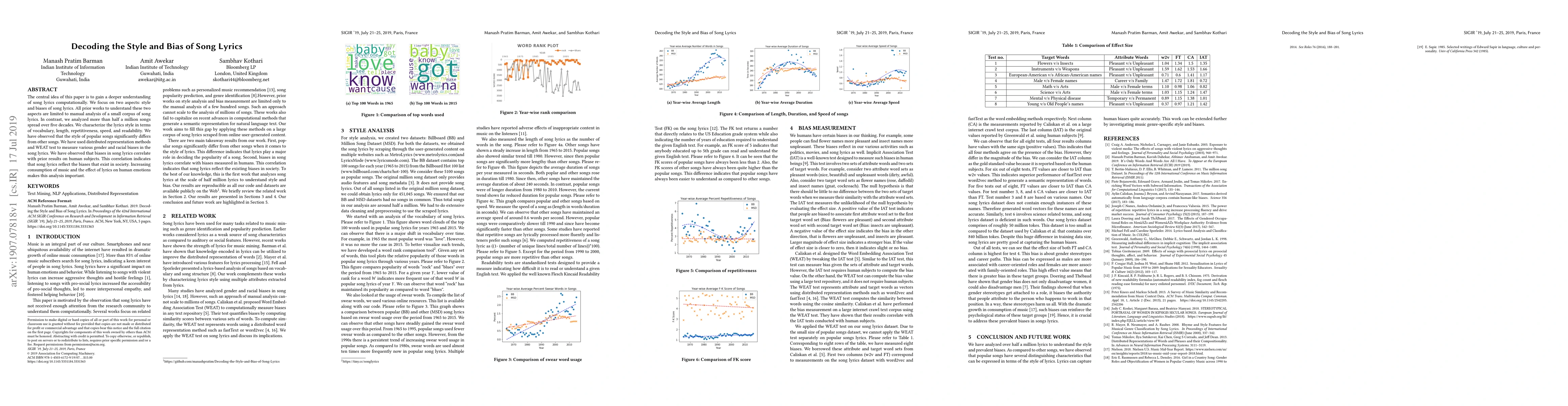 This paper computationally analyzes over half a million songs to characterize lyric styles and measure biases, revealing significant differences between popular and other songs, and finding that song lyrics reflect societal biases.