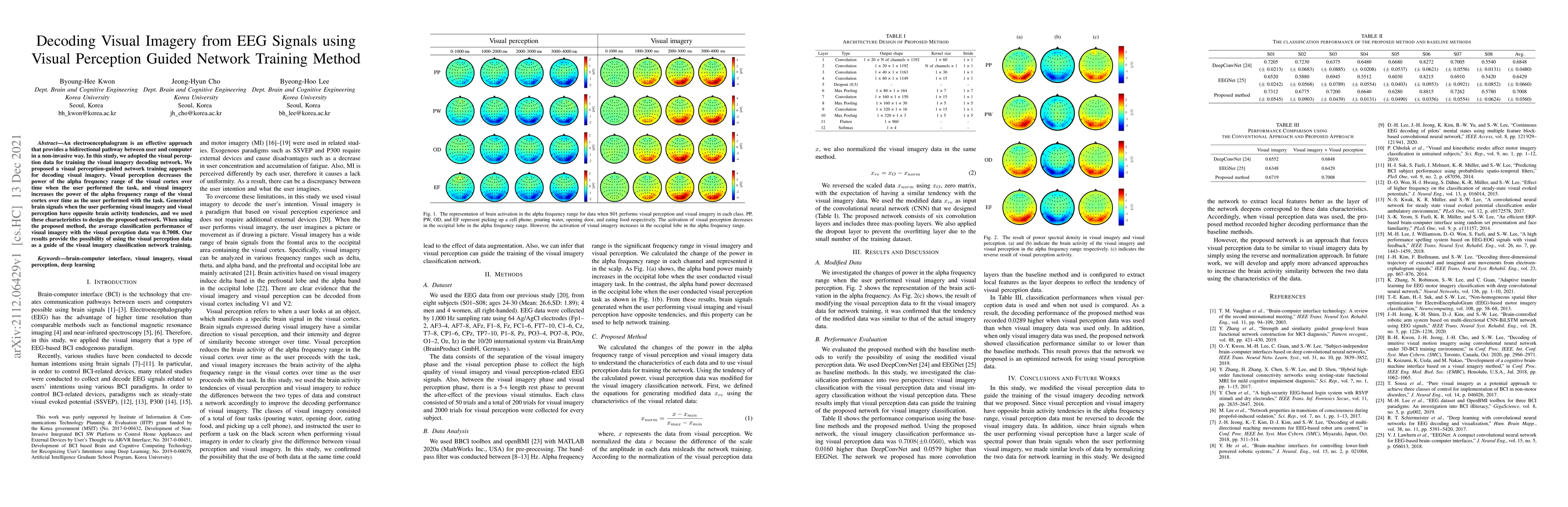 An electroencephalogram is an effective approach that provides a bidirectional pathway between user and computer in a non-invasive way. In this study, we adopted the visual perception data for training the visual imagery decoding network. We proposed a visual perception-guided network training approach for decoding visual imagery. Visual perception decreases the power of the alpha frequency range of the visual cortex over time when the user performed the task, and visual imagery increases the power of the alpha frequency range of the visual cortex over time as the user performed with the task. Generated brain signals when the user performing visual imagery and visual perception have opposite brain activity tendencies, and we used these characteristics to design the proposed network. When using the proposed method, the average classification performance of visual imagery with the visual perception data was 0.7008. Our results provide the possibility of using the visual perception data as a guide of the visual imagery classification network training.
