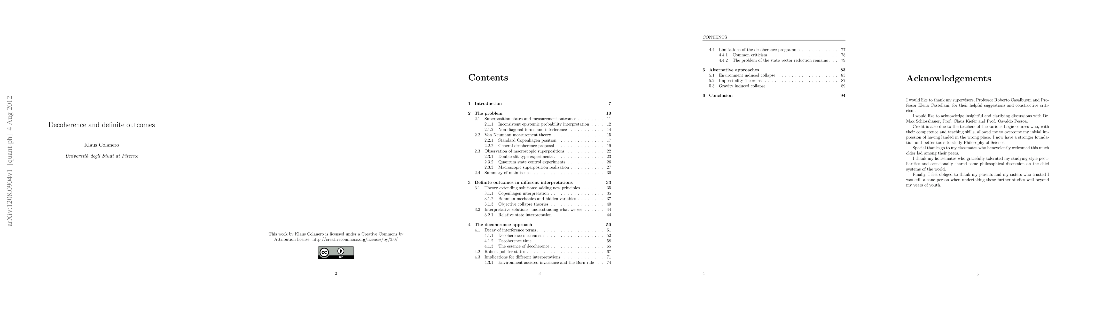 This thesis has three aims: (1) to clarify in detail the relation between the decoherence mechanism and the problem of definite outcomes, (2) to dispel common misconceptions about the measurement problem in quantum mechanics, and (3) to present some recent alternative approaches in the quest for a satisfactory solution of the definite outcomes problem.