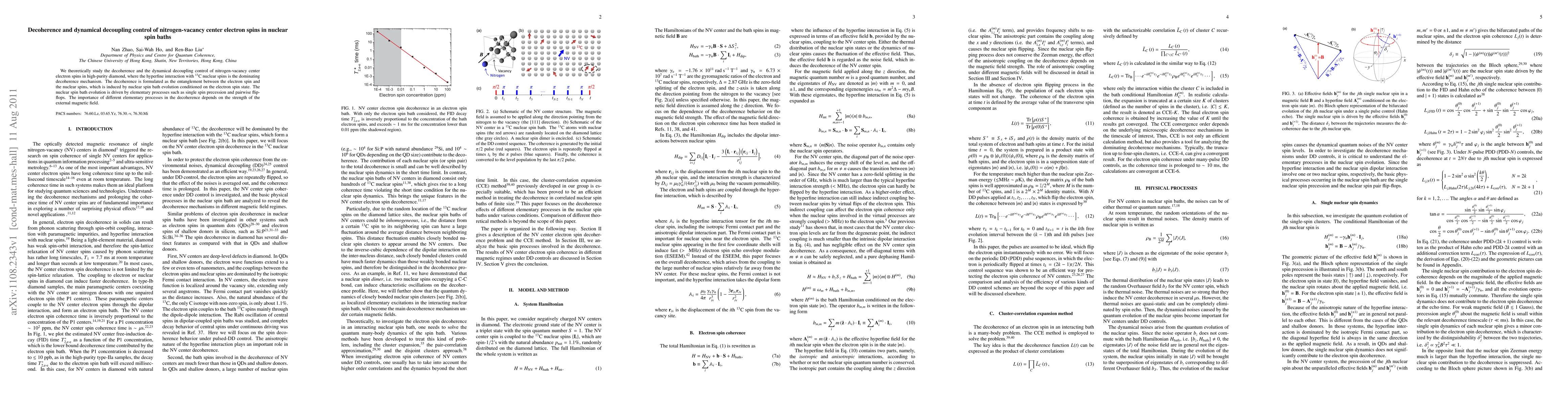 This paper theoretically investigates the decoherence mechanisms affecting nitrogen-vacancy center electron spins in high-purity diamond, focusing on the hyperfine interaction with $^{13}$C nuclear spins. It explores dynamical decoupling strategies to mitigate the entanglement between electron and nuclear spins, emphasizing the role of different elementary processes under varying magnetic field strengths.