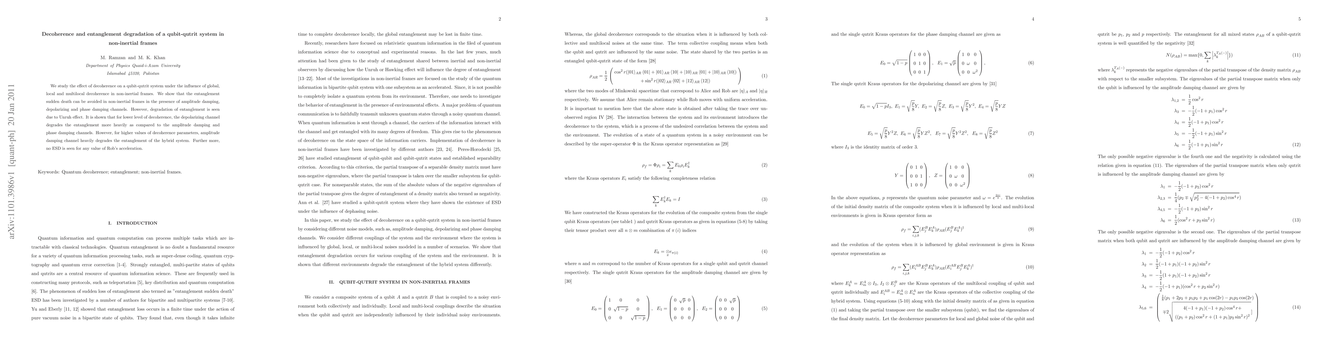This paper investigates decoherence effects on a qubit-qutrit system in non-inertial frames, demonstrating that entanglement sudden death can be avoided under certain conditions. It finds that while the Unruh effect degrades entanglement, the depolarizing channel impacts it more at lower decoherence levels, while amplitude damping becomes more significant at higher levels.