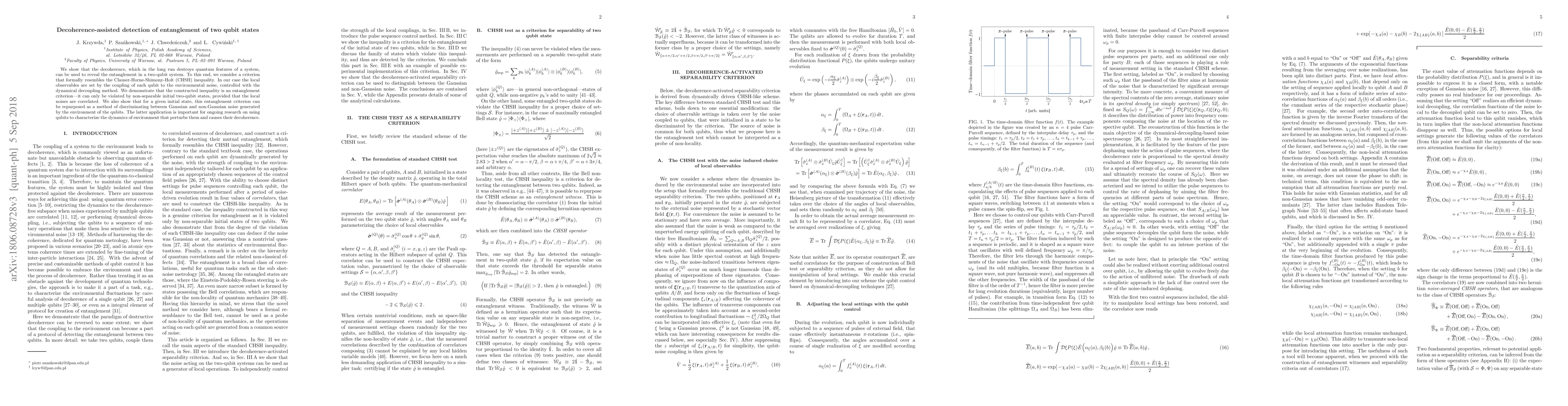 This paper demonstrates that decoherence, typically a destructive quantum feature, can reveal entanglement in two-qubit systems by violating a modified CHSH inequality. The method uses local observables influenced by environmental noise, showing that only non-separable states can violate this inequality when local noises are correlated.