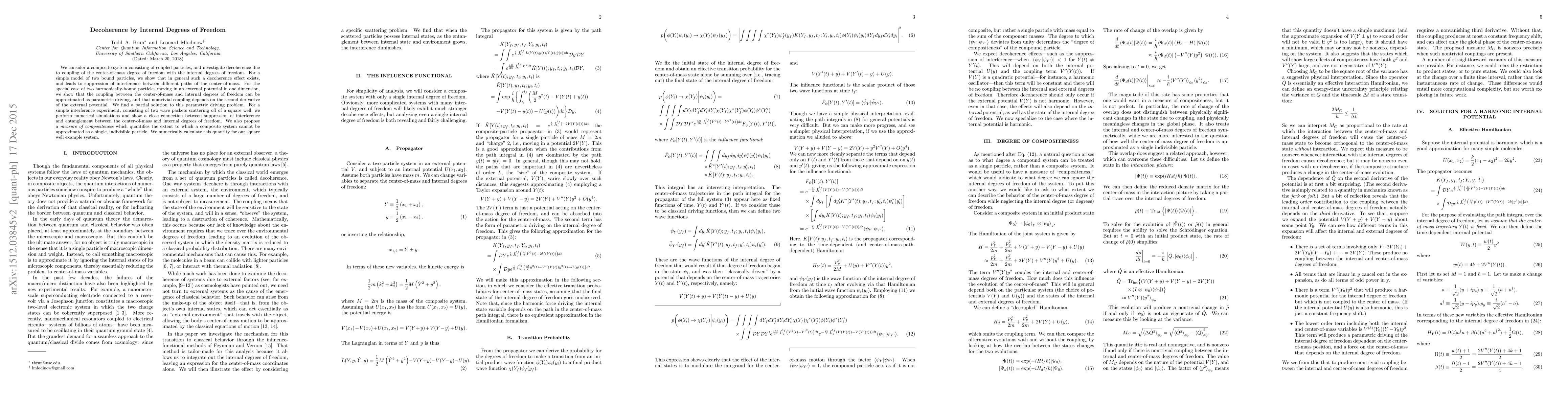 The paper presents a detailed analysis of decoherence due to internal degrees of freedom in composite systems, proposes a measure of compositeness, and demonstrates its application through numerical simulations.