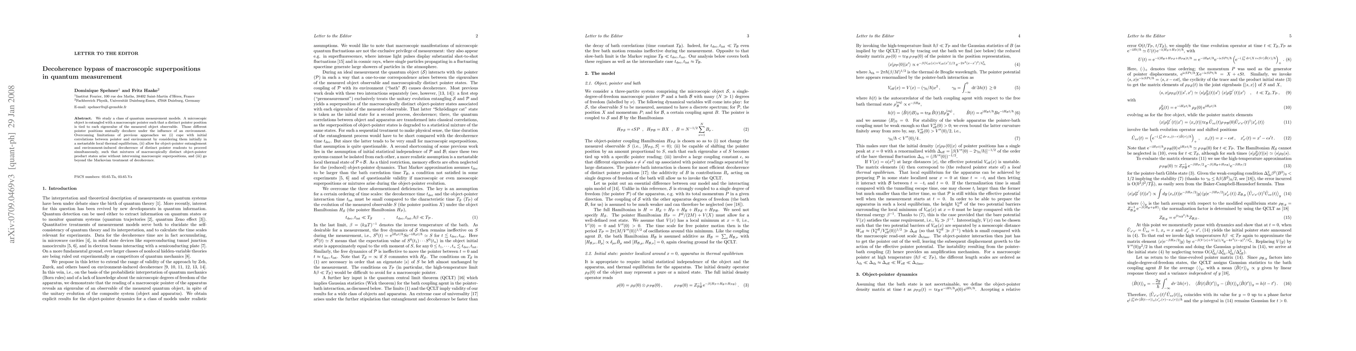 This paper explores advanced quantum measurement models where a microscopic object is entangled with a macroscopic pointer, addressing decoherence and bypassing macroscopic superpositions. It overcomes previous limitations by considering initial correlations, allowing simultaneous decoherence, and moving beyond Markovian treatment.