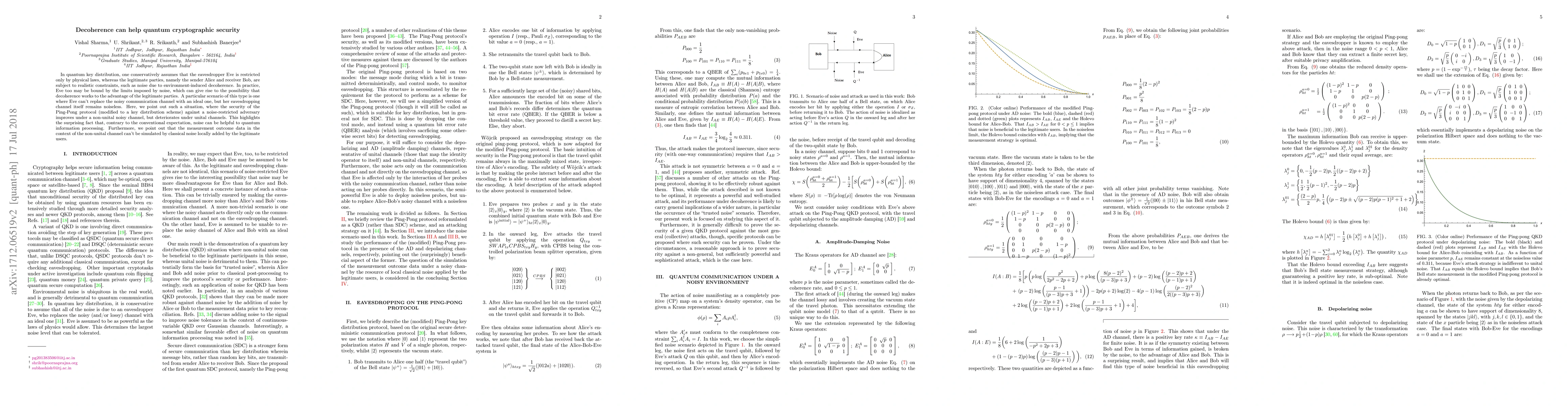 In quantum key distribution, one conservatively assumes that the eavesdropper Eve is restricted only by physical laws, whereas the legitimate parties, namely the sender Alice and receiver Bob, are subject to realistic constraints, such as noise due to environment-induced decoherence. In practice, Eve too may be bound by the limits imposed by noise, which can give rise to the possibility that decoherence works to the advantage of the legitimate parties. A particular scenario of this type is one where Eve can't replace the noisy communication channel with an ideal one, but her eavesdropping channel itself remains noiseless. Here, we point out such a situation, where the security of the Ping-Pong protocol (modified to a key distribution scheme) against a noise-restricted adversary improves under a non-unital noisy channel, but deteriorates under unital channels. This highlights the surprising fact that, contrary to the conventional expectation, noise can be helpful to quantum information processing. Furthermore, we point out that the measurement outcome data in the context of the non-unital channel can't be simulated by classical noise locally added by the legitimate users.