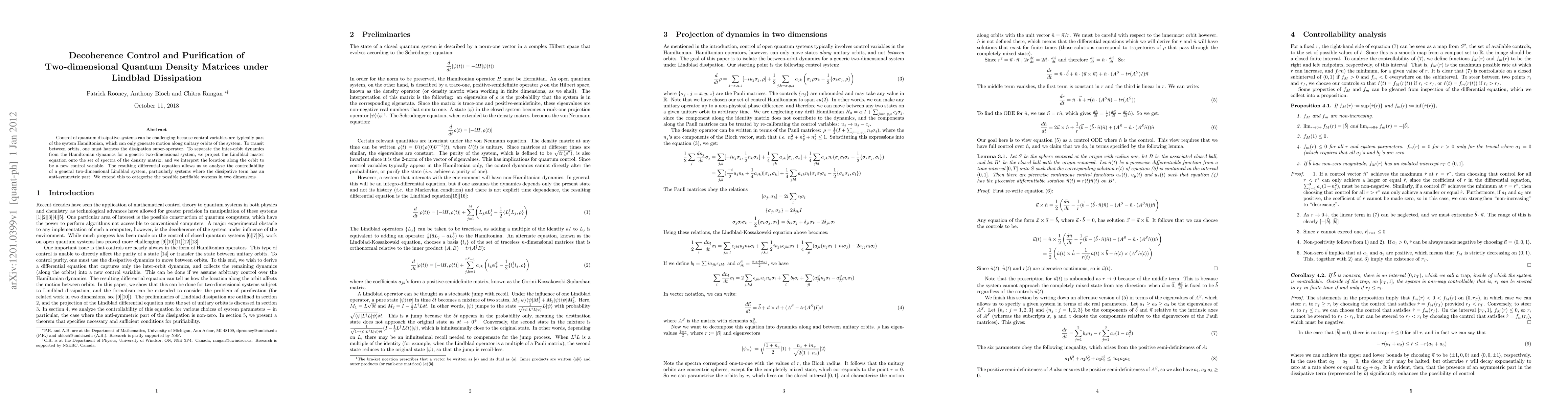 Control of quantum dissipative systems can be challenging because control variables are typically part of the system Hamiltonian, which can only generate motion along unitary orbits of the system. To transit between orbits, one must harness the dissipation super-operator. To separate the inter-orbit dynamics from the Hamiltonian dynamics for a generic two-dimensional system, we project the Lindblad master equation onto the set of spectra of the density matrix, and we interpret the location along the orbit to be a new control variable. The resulting differential equation allows us to analyze the controllability of a general two-dimensional Lindblad system, particularly systems where the dissipative term has an anti-symmetric part. We extend this to categorize the possible purifiable systems in two dimensions.