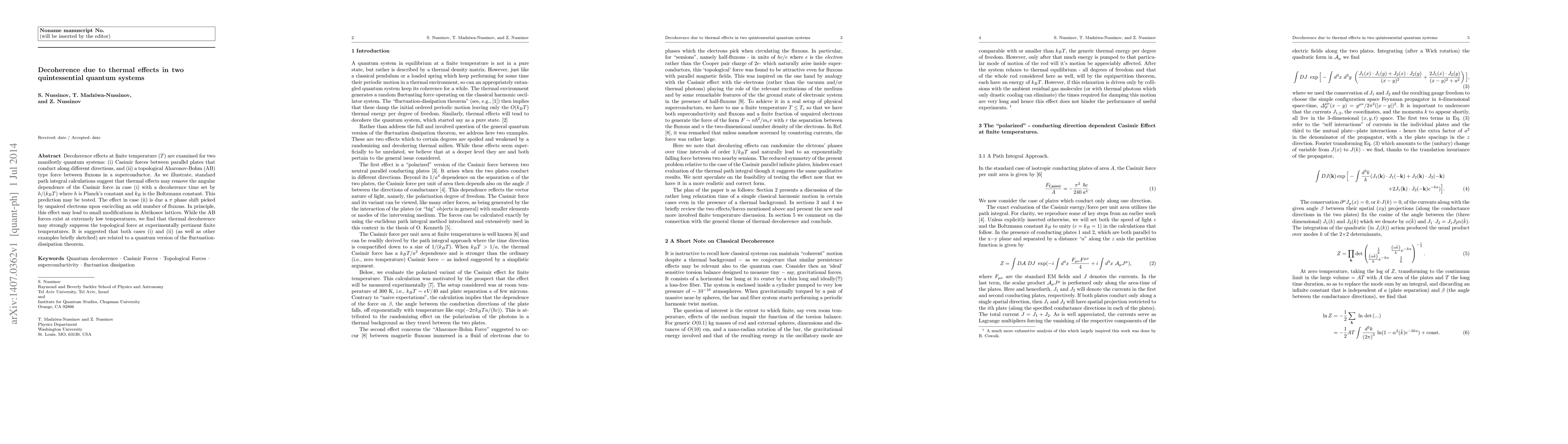 Researchers investigated how thermal effects affect two quantum systems: Casimir forces between parallel plates and topological Aharonov-Bohm forces in a superconductor, finding that thermal decoherence strongly suppresses these forces at experimentally pertinent temperatures.