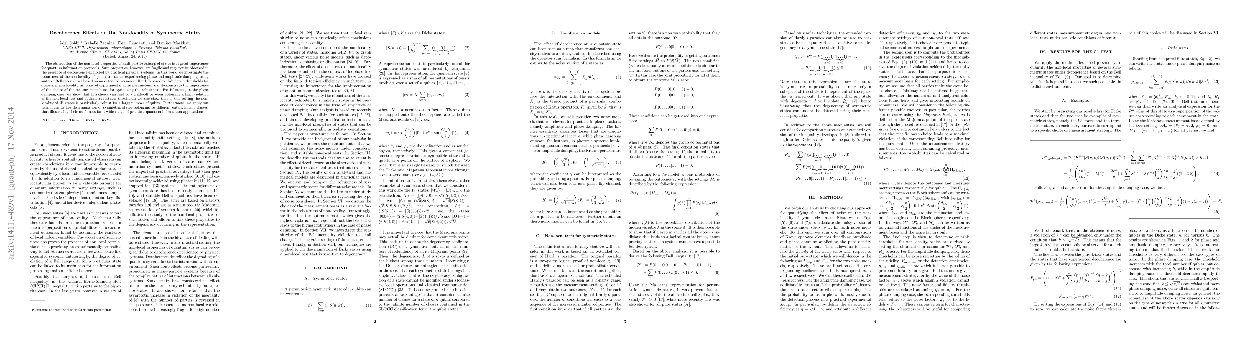 This paper examines how decoherence affects the non-local properties of symmetric entangled states, deriving thresholds for non-locality under phase and amplitude damping. It highlights the importance of measurement bases in optimizing robustness and demonstrates the trade-off between high non-locality violation and robustness for $W$ states.