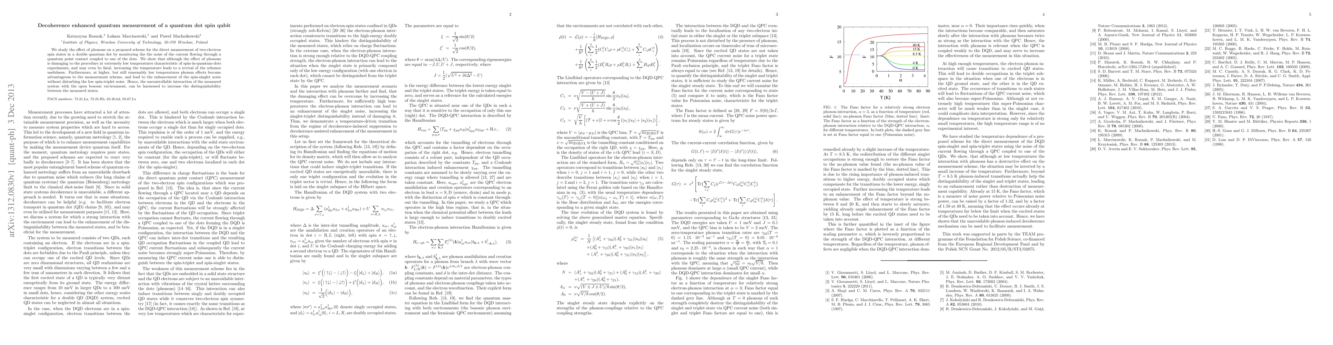 This paper investigates the impact of phonons on a quantum dot spin qubit measurement scheme, revealing that while phonons hinder the process at very low temperatures, increasing the temperature can enhance the measurement by improving the distinguishability between spin states through decoherence.