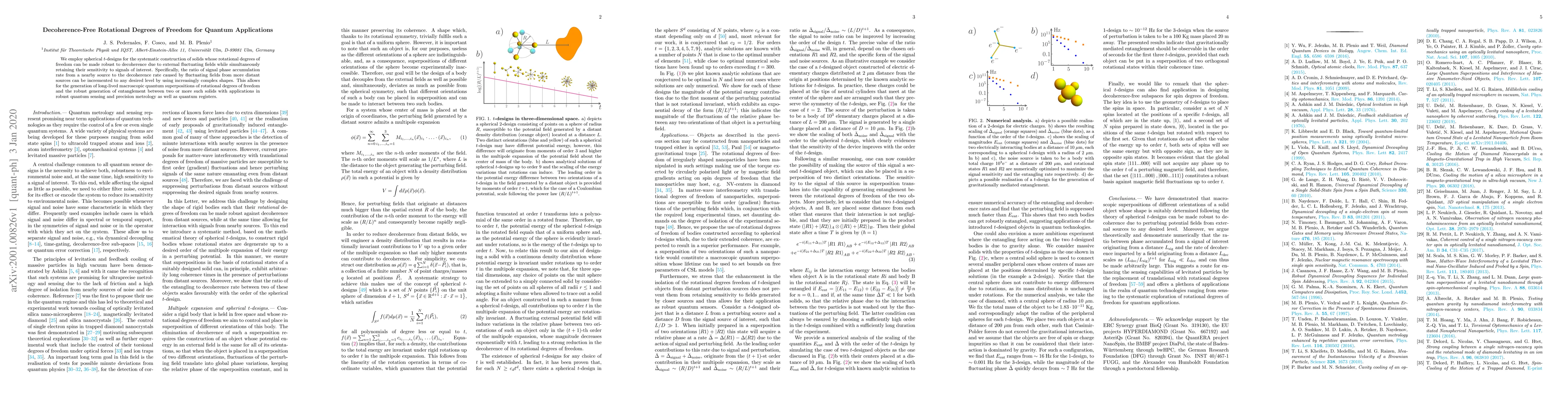 This paper proposes the use of spherical $t$-designs to create solids with rotational degrees of freedom that are resilient to decoherence from external fields while maintaining sensitivity to nearby signals. These designs enable long-lived quantum superpositions and robust entanglement, with potential applications in quantum sensing and metrology.