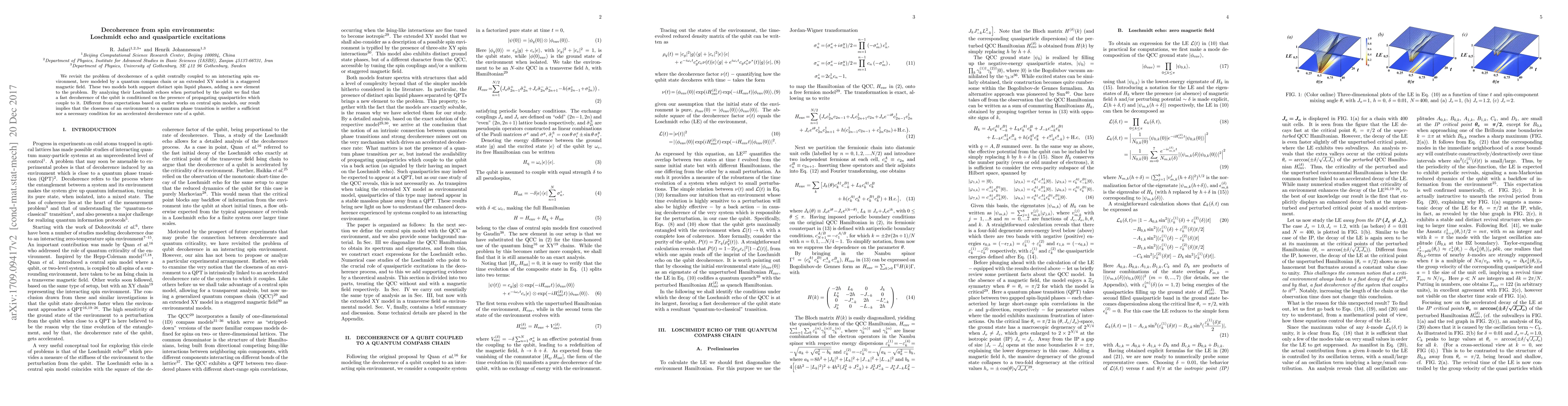 We revisit the problem of decoherence of a qubit centrally coupled to an interacting spin environment, here modeled by a quantum compass chain or an extended XY model in a staggered magnetic field. These two models both support distinct spin liquid phases, adding a new element to the problem. By analyzing their Loschmidt echoes when perturbed by the qubit we find that a fast decoherence of the qubit is conditioned on the presence of propagating quasiparticles which couple to it. Different from expectations based on earlier works on central spin models, our result implies that the closeness of an environment to a quantum phase transition is neither a sufficient nor a necessary condition for an accelerated decoherence rate of a qubit.