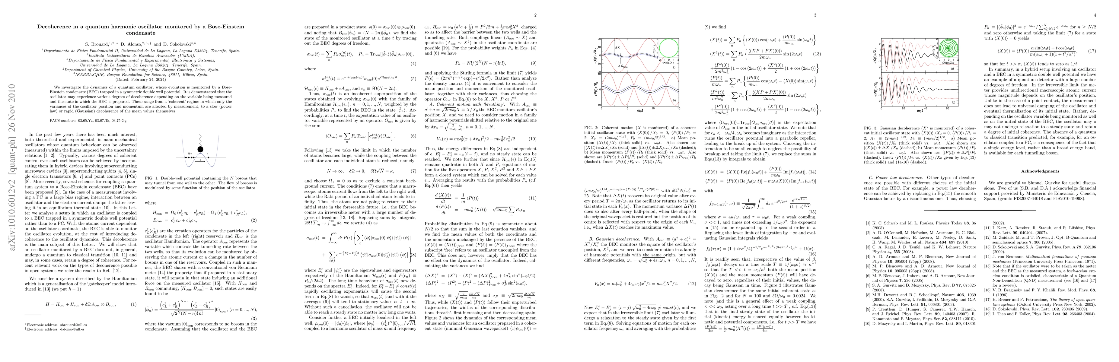 This paper explores how a quantum harmonic oscillator's dynamics are influenced by monitoring via a Bose-Einstein condensate, revealing varying degrees of decoherence from coherent variance changes to slow or rapid decoherence of mean values, depending on the measurement and BEC state.
