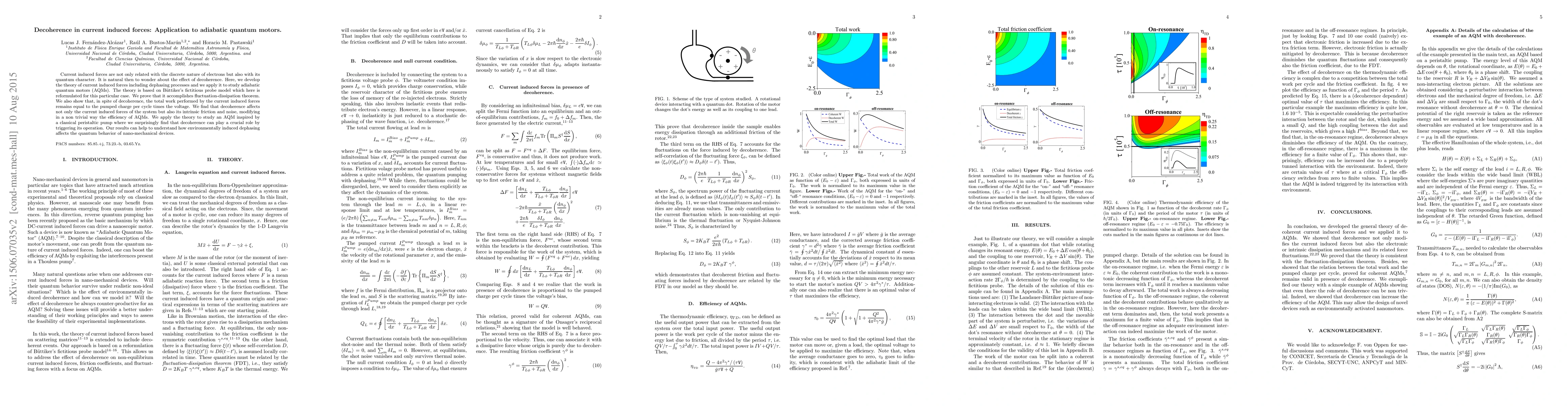 This paper develops a theory for current induced forces in quantum systems, including the effects of decoherence, and applies it to adiabatic quantum motors. Despite decoherence, the total work remains proportional to the pumped charge and voltage, but it alters the system's friction, noise, and efficiency, potentially triggering the operation of certain quantum motors.